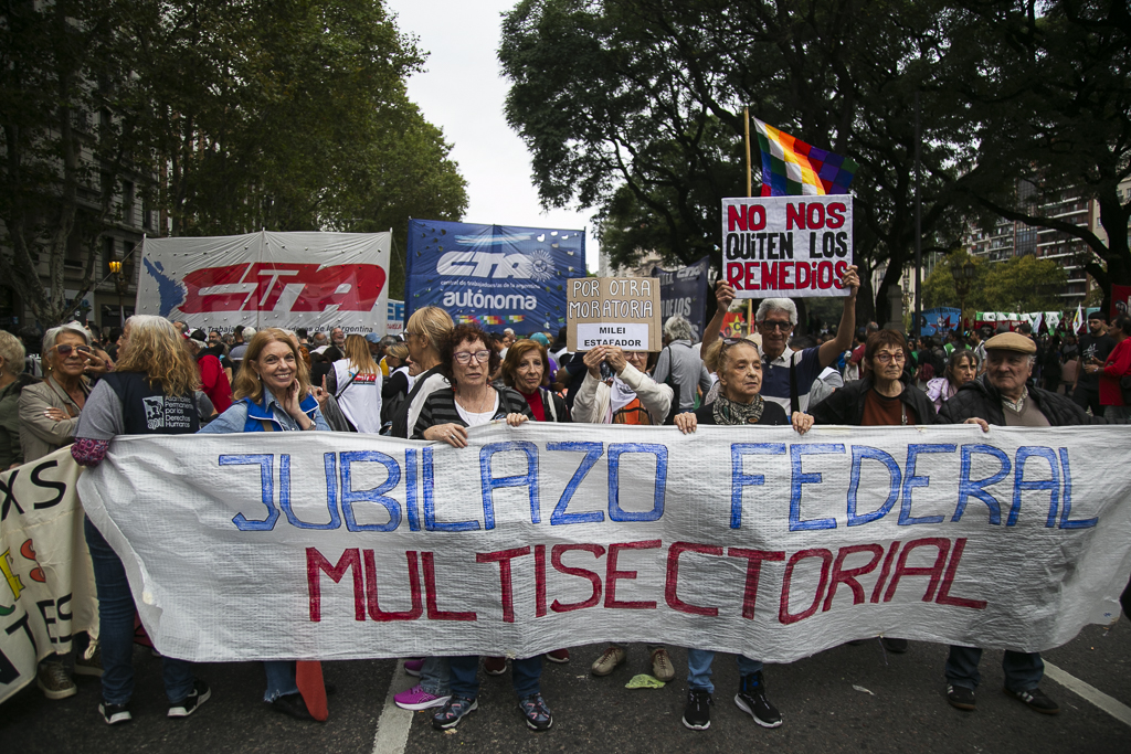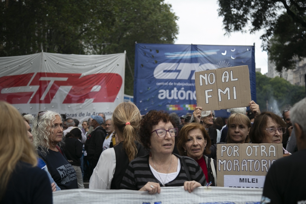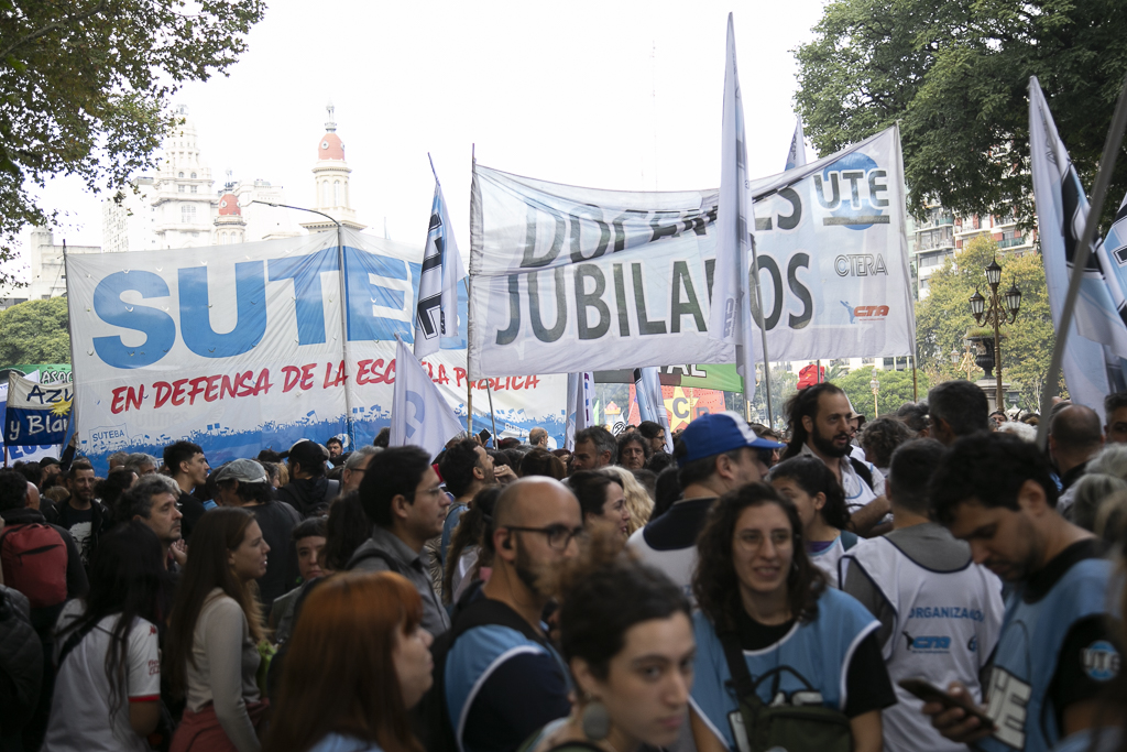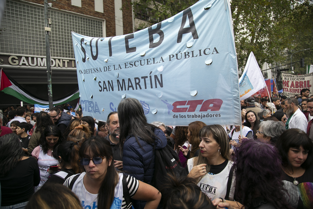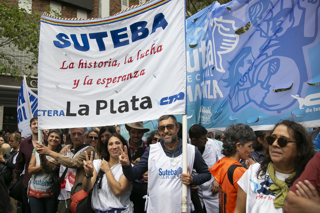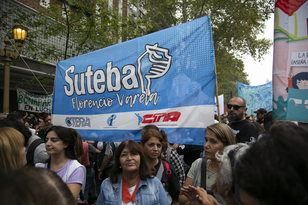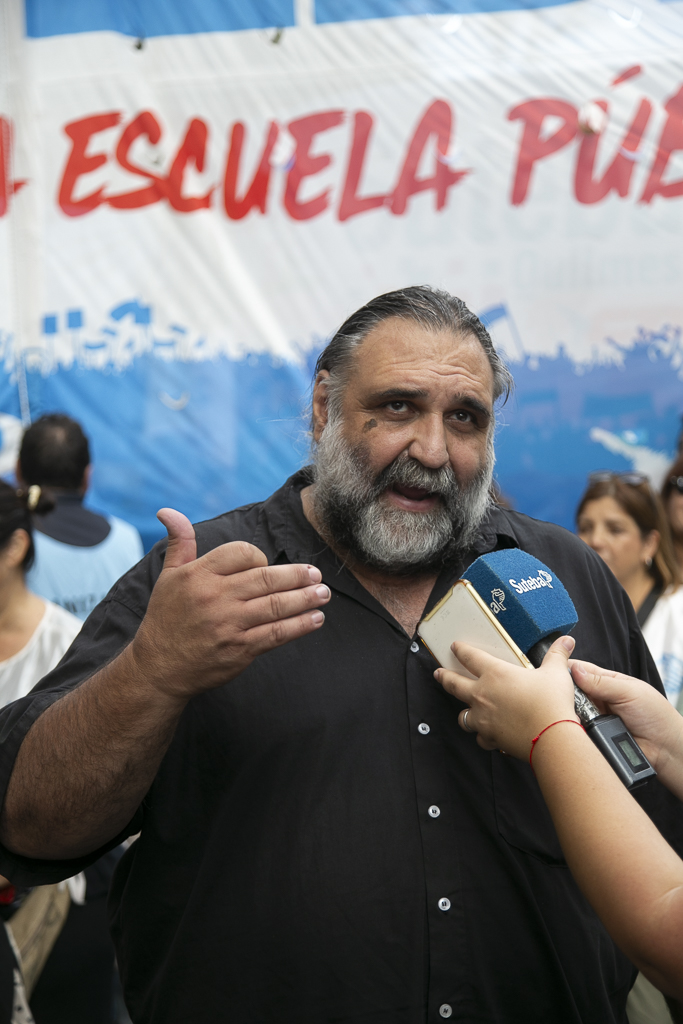 Roberto Baradel, Secretario General del SUTEBA: "Estamos acompañando a lxs Jubiladxs que con toda dignidad vienen marchando todos los miércoles. Un grupo grande de compañerxs nuestrxs están en esas marchas, repudiando la brutal represión de Patricia Bullrich y de Javier Milei, deseándole fuerza a Pablo Grillo, reclamando un aumento de las jubilaciones mínimas, que les devuelvan los medicamentos, los servicios sociales. Y garantizamos también el Paro nacional en unidad de todas las Centrales Sindicales, en contra del desguace del Estado, los despidos, la represión, la violación a los derechos humanos, los recortes en salud, Educación, obra pública. Y por supuesto en contra de la timba financiera y de una nueva estafa del Fondo Monetario Internacional que van a utilizar para llevarse la plata afuera y dejarle la deuda al Pueblo".