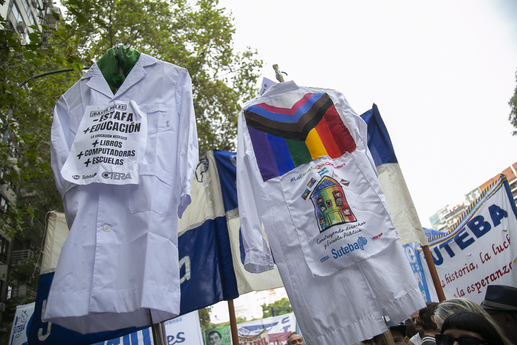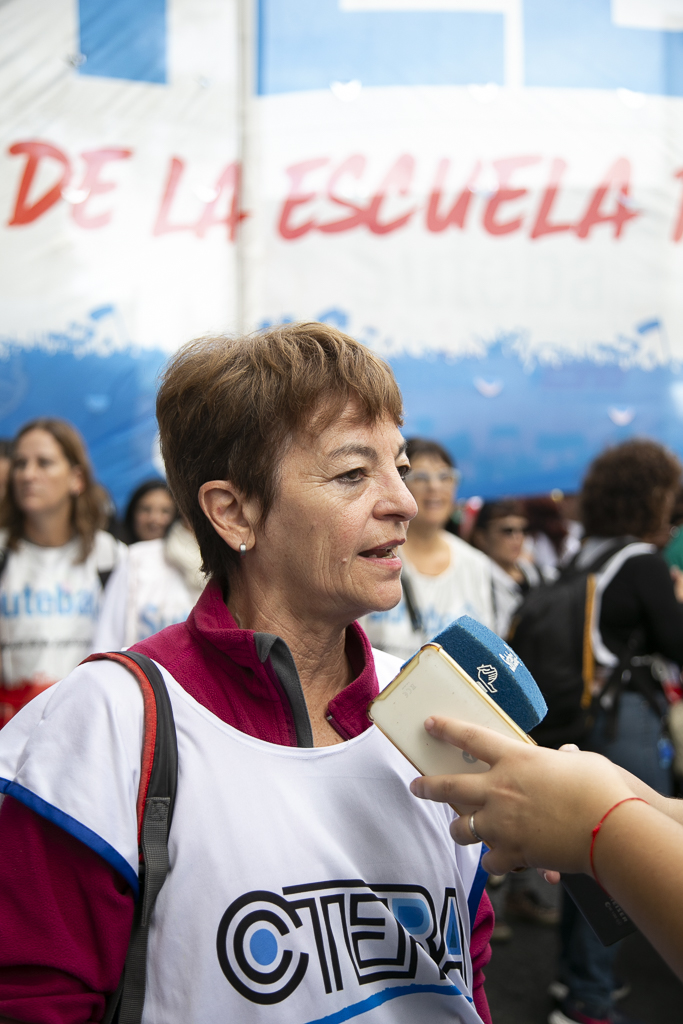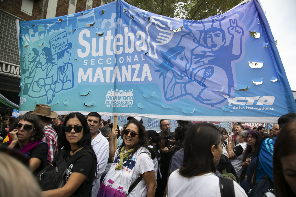 Roberto Baradel, Secretario General del SUTEBA: "Estamos acompañando a lxs Jubiladxs que con toda dignidad vienen marchando todos los miércoles. Un grupo grande de compañerxs nuestrxs están en esas marchas, repudiando la brutal represión de Patricia Bullrich y de Javier Milei, deseándole fuerza a Pablo Grillo, reclamando un aumento de las jubilaciones mínimas, que les devuelvan los medicamentos, los servicios sociales. Y garantizamos también el Paro nacional en unidad de todas las Centrales Sindicales, en contra del desguace del Estado, los despidos, la represión, la violación a los derechos humanos, los recortes en salud, Educación, obra pública. Y por supuesto en contra de la timba financiera y de una nueva estafa del Fondo Monetario Internacional que van a utilizar para llevarse la plata afuera y dejarle la deuda al Pueblo".