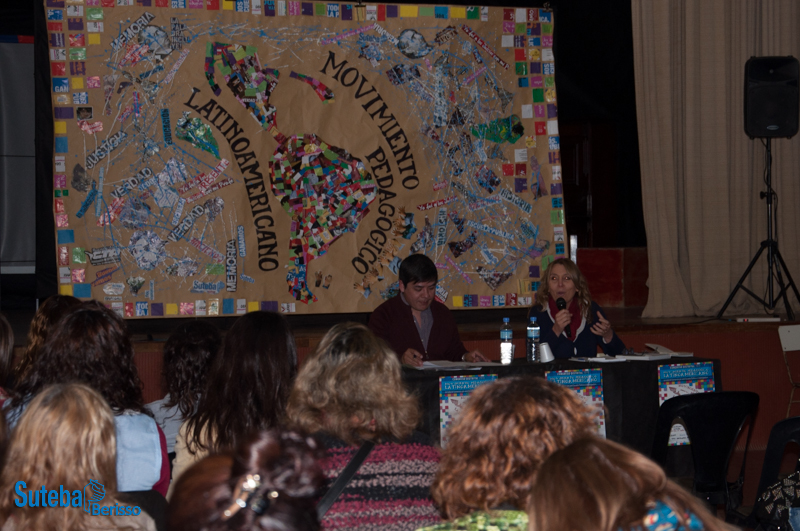 Gladys Bravo, Subsecretaria de Comunicaciones del SUTEBA Provincia, realizó luego una disertación, dando la bienvenida y definiendo los lineamientos político-pedagógicos a abordar durante el día de trabajo, centrados en el panorama político actual de América Latina y cómo se enmarca en el mismo el MPL, como también en el rol de estos encuentros en la formación y consolidación de las experiencias pedagógicas innovadoras.