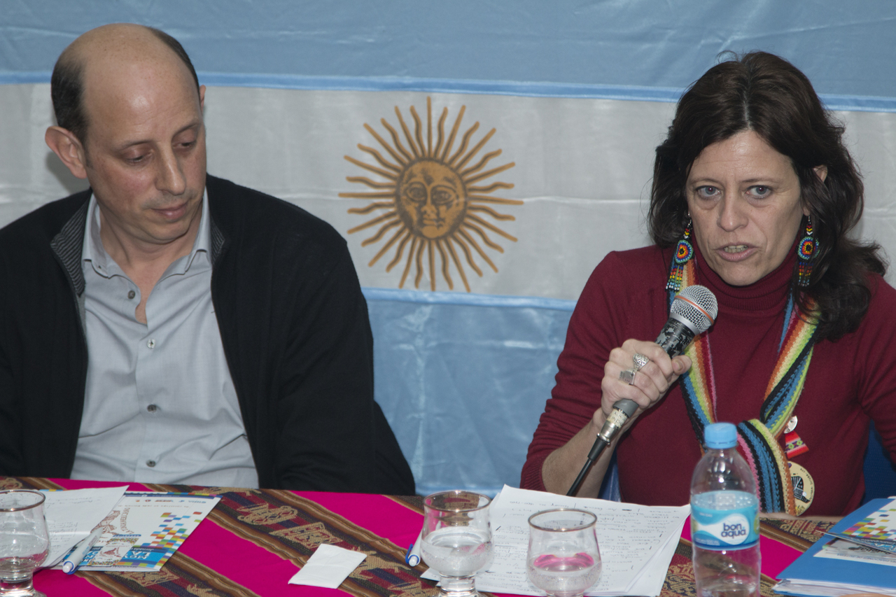 Posteriormente, Laura Santillán, pedagoga e investigadora de la UBA, y Adrián Cannellotto, rector de la Universidad Pedagógica (UNIPE), formaron un panel en el que disertaron sobre los lineamientos pedagógicos del MPL e hicieron hincapié en la Educación Emancipadora.