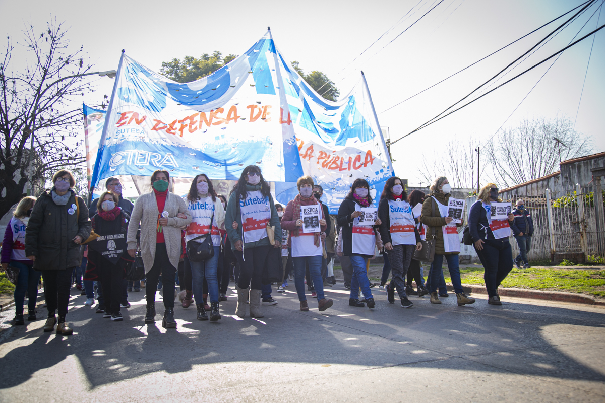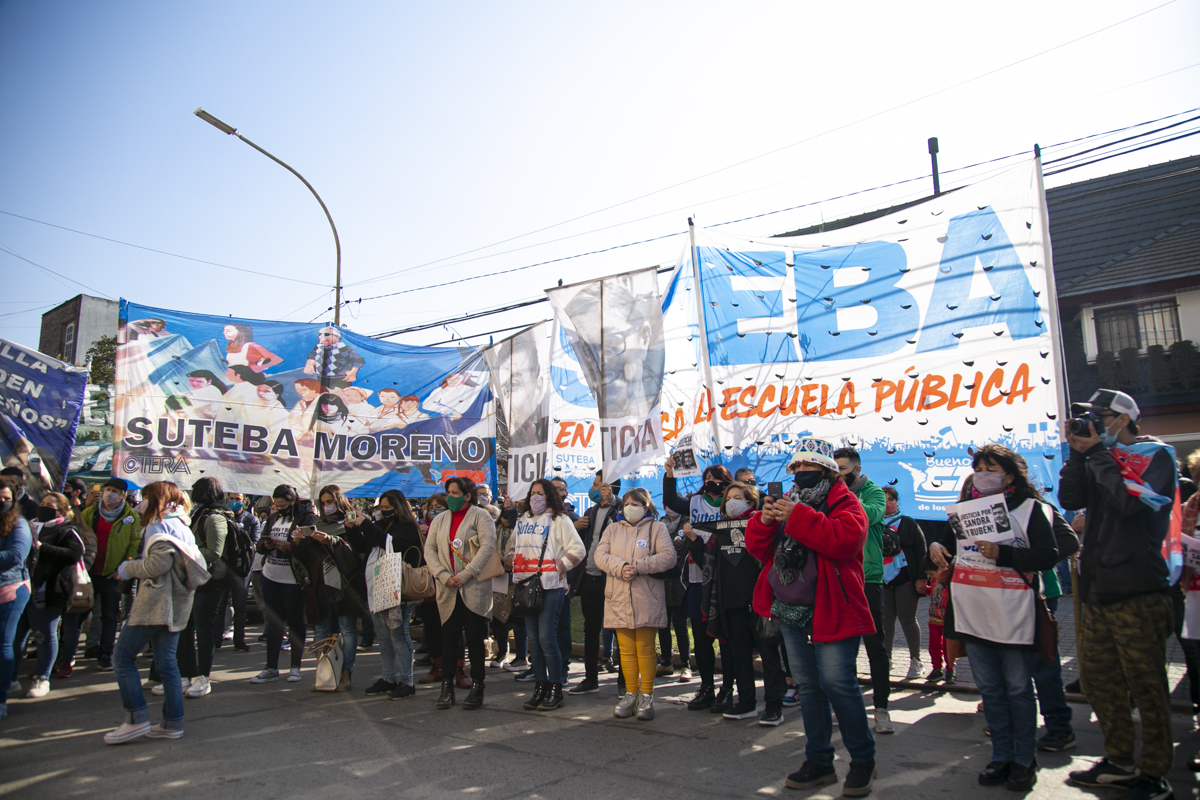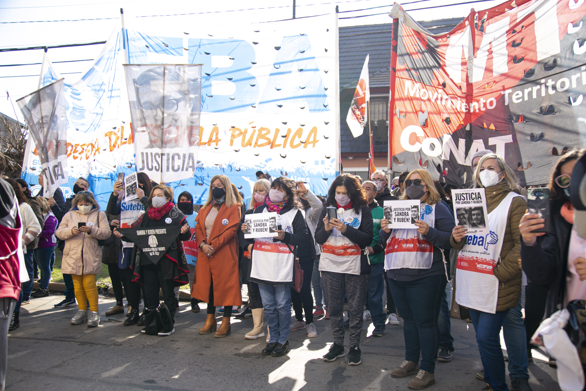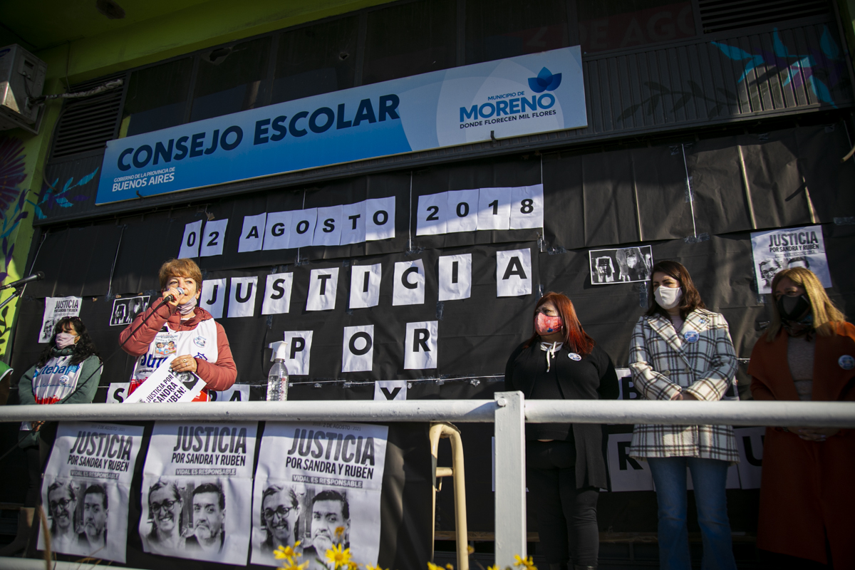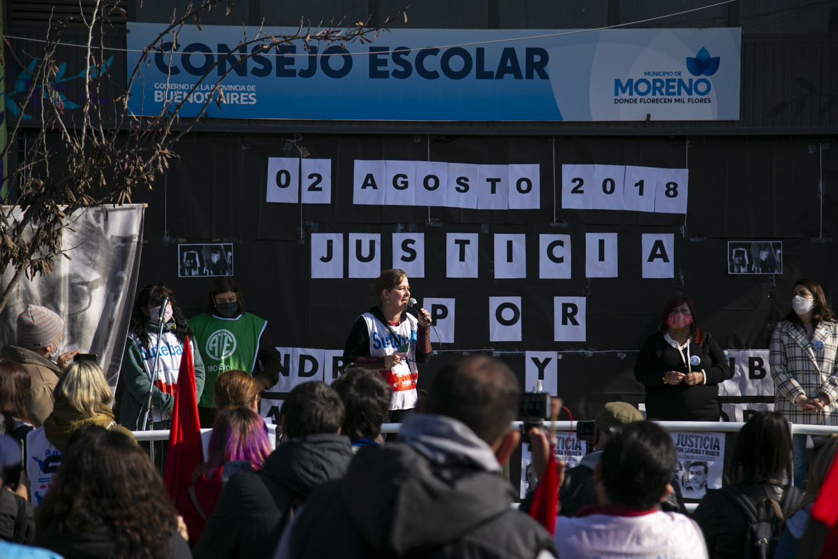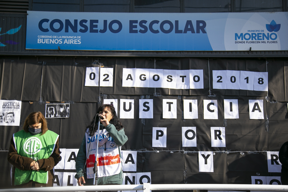Por último, Mariana Cattáneo, Secretaria General del SUTEBA Moreno, expresó: "Vamos a seguir luchando, en Moreno estamos de pie porque hay una Provincia y un país que tienen memoria, que recuerdan hoy y cada día a Sandra y a Rubén, y porque vamos a pelear hasta que haya justicia completa por nuestrxs compañerxs; porque eso aprendimos de la CTERA, porque eso aprendimos de Carlos Fuentealba. Sandra y Rubén son bandera de lucha, nos vamos a seguir organizando para que haya Escuelas Seguras en todo el territorio y para que llegue a Moreno todo lo que falta".