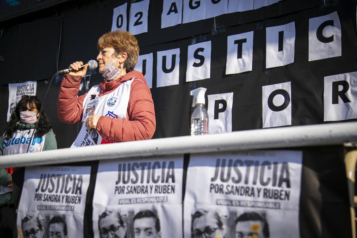 Por su parte, Mabel Zurita, compañera de Rubén Rodríguez, no concurrió al acto ya que prefirió honrar la memoria de Rubén asistiendo a la Escuela en la que se desempeña como Docente, pero envió un audio con su testimonio: "Hoy, 2 de agosto, se cumplen tres años del asesinato laboral de Sandra Calamano y Rubén Rodríguez, dos Trabajadorxs comprometidxs con la Educación Pública. Nuestro pedido de justicia sigue firme. Y también la necesidad imperiosa de que cada unx de lxs responsables de este hecho evitable sean juzgadxs finalmente, para que cada unx de nosotrxs podamos tener paz en nuestros corazones. ¡Sandra y Rubén, presentes! ¡Ahora y siempre!".