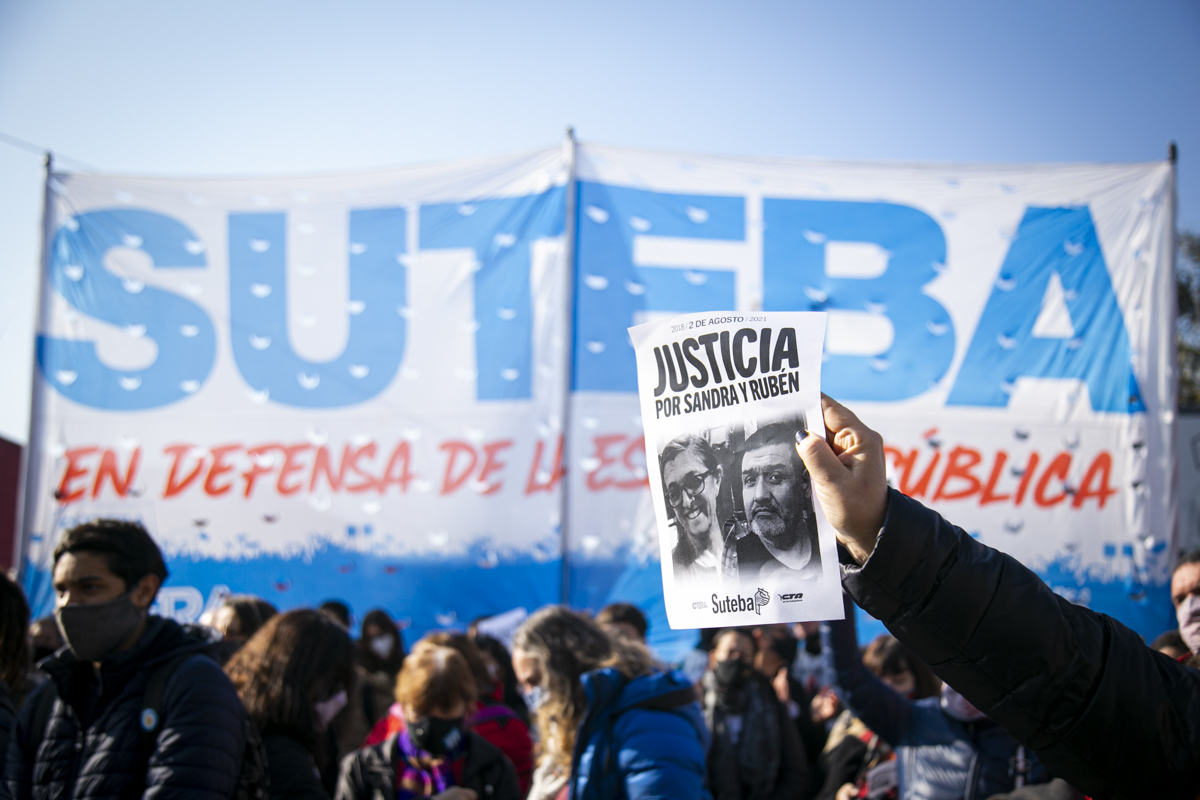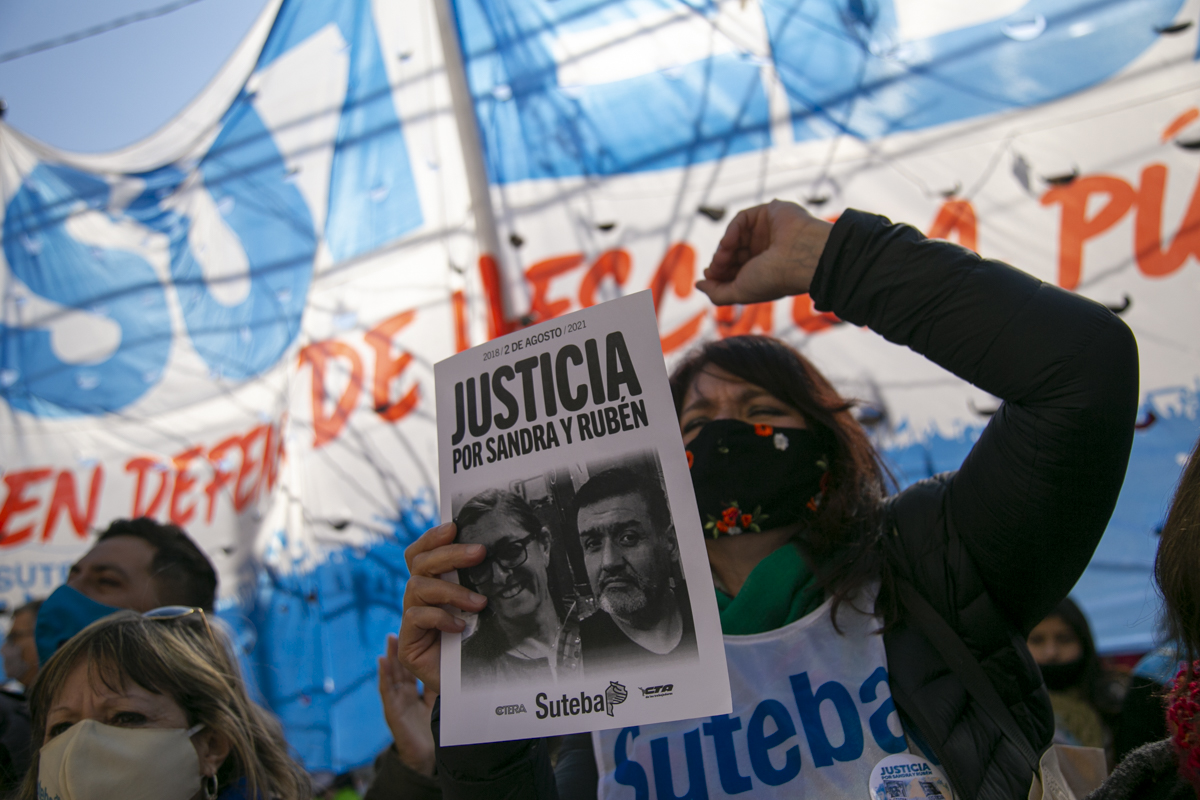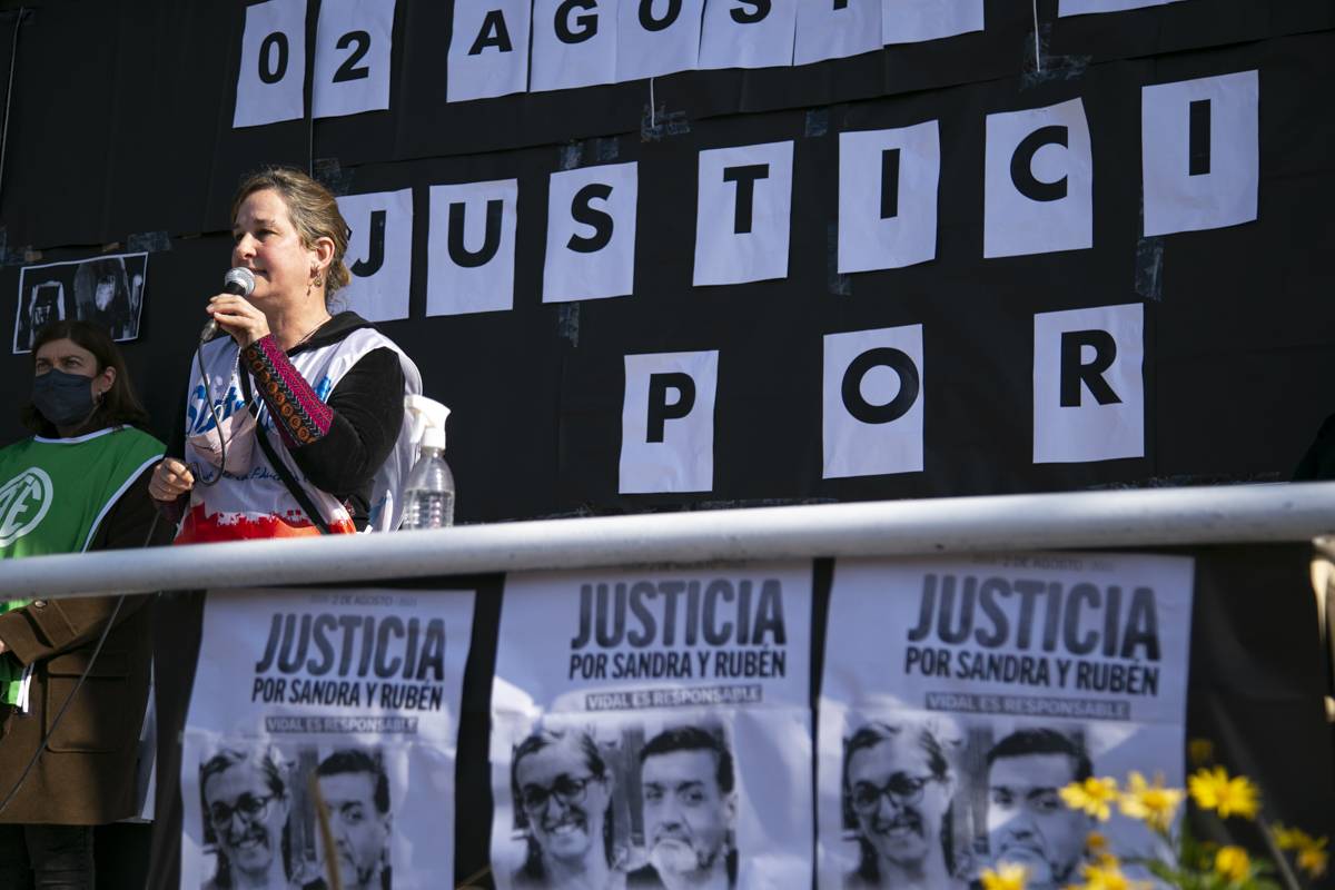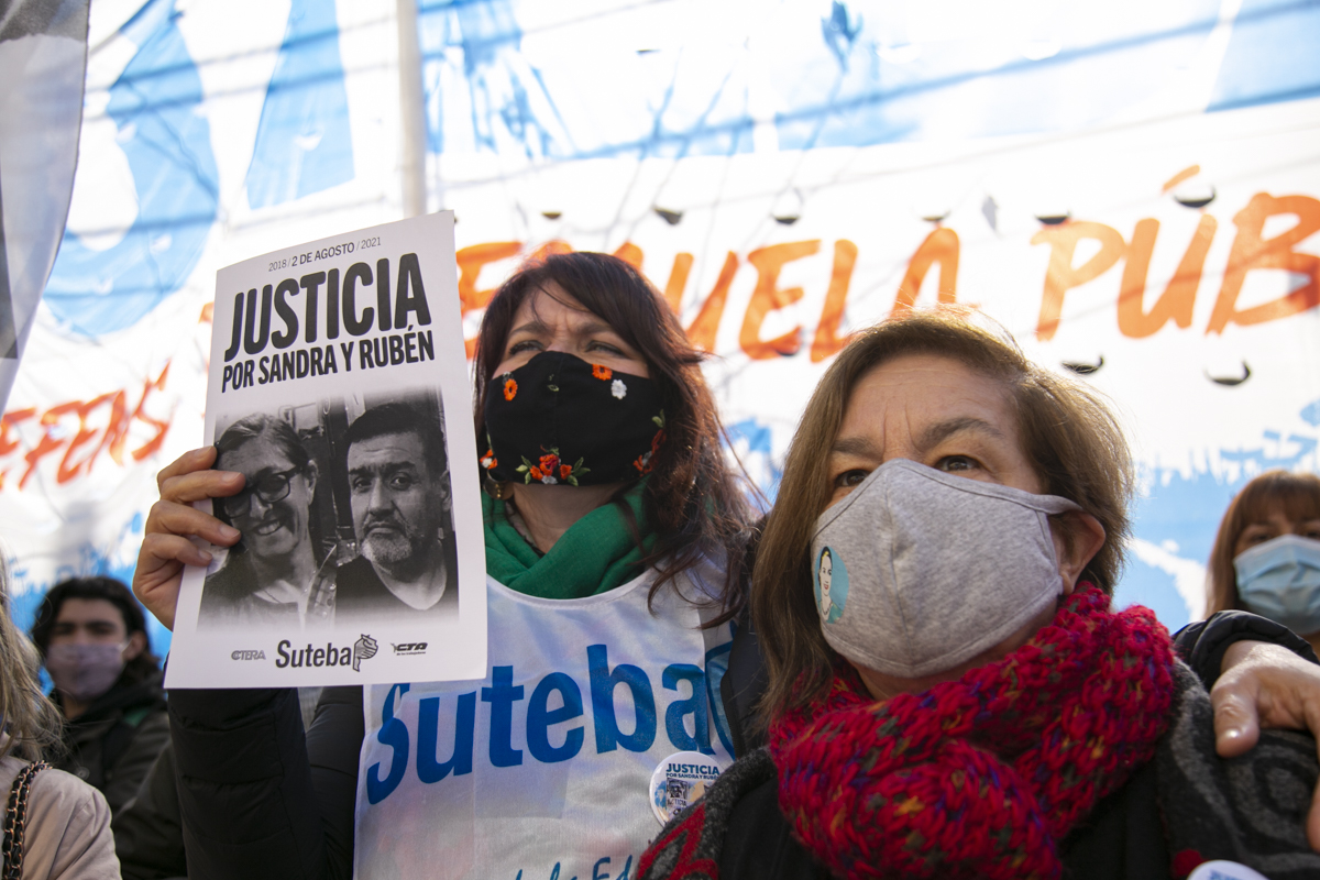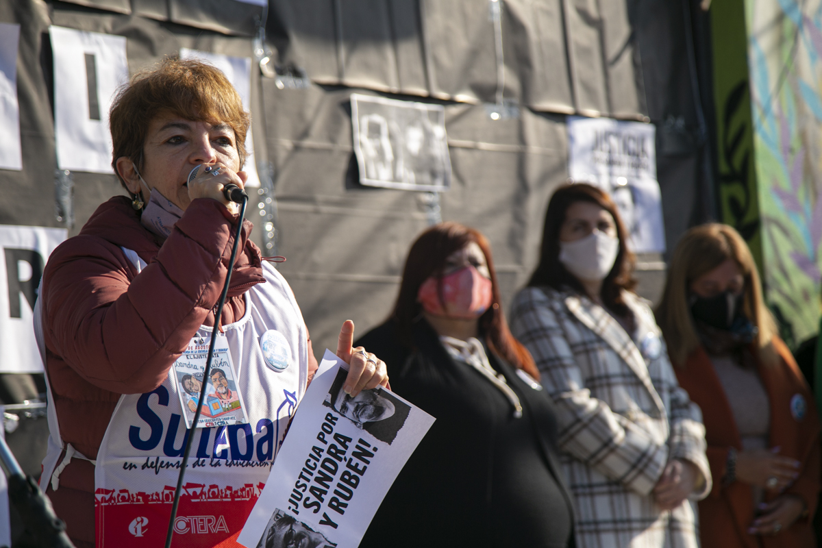 "La unidad fue nuestra fortaleza para exigir Justicia. Y decir Justicia por Sandra y Rubén es decir Escuelas seguras para todxs nuestrxs pibxs; es reconocer que hoy tenemos un Estado presente en un momento muy difícil. La Justicia va a llegar cuando no vuelva a ocurrir lo de Sandra y Rubén; pero tampoco lo de la Maestra Mónica Jara, lo de Mariano y lo de Nicolás. No olvidamos y no vamos a olvidar hasta que haya Justicia completa", concluyó Torre.