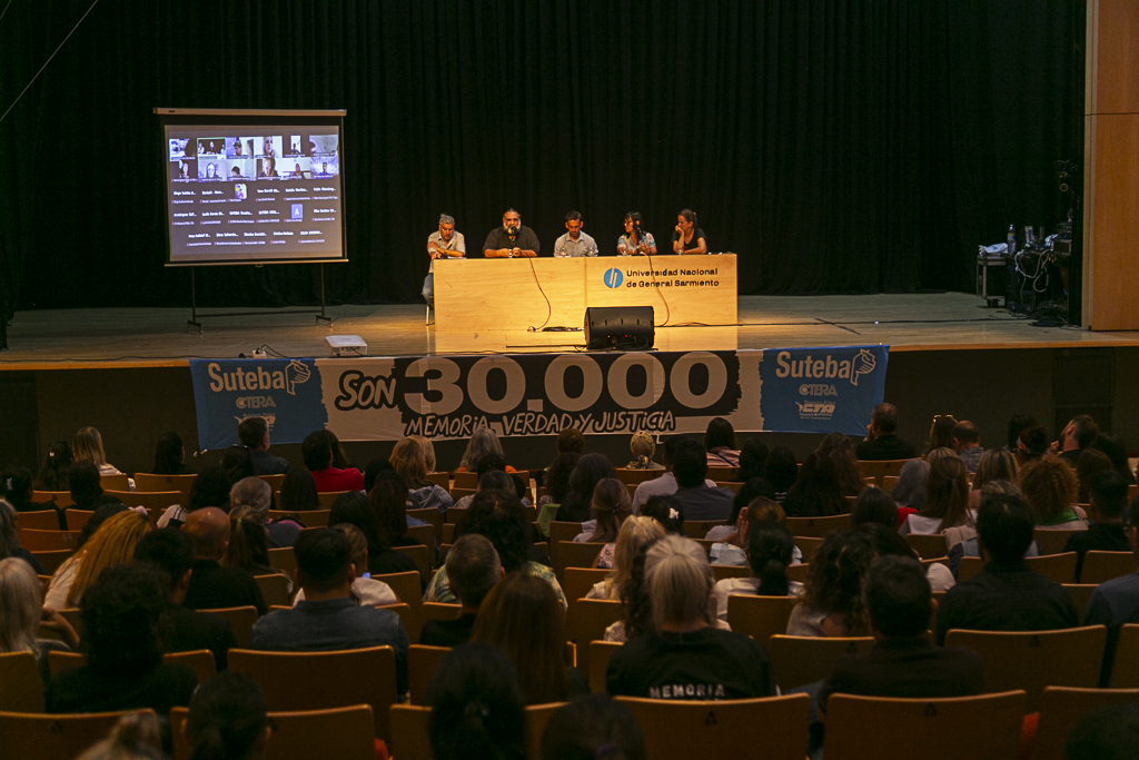 En el marco de las actividades por el 50° aniversario del inicio de la última dictadura cívico militar, el SUTEBA y la Universidad Nacional de General Sarmiento (UNGS) organizaron una jornada de Memoria, Educación y Lucha en el Multiespacio Cultural de la UNGS, un espacio de reflexión colectiva sobre nuestra historia y el rol de la Escuela Pública como pilar de resistencia.