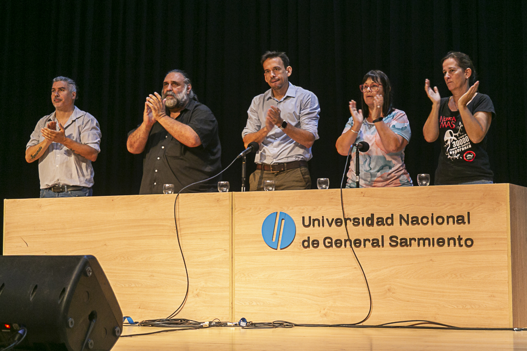 A continuación, se desarrolló un panel que contó con la presencia de nuestro Secretario General, Roberto Baradel, y el Vicerrector de la UNGS, Germán Pinazo. "Recordar al terrorismo de Estado es recordar el horror y la crueldad, pero también que resistimos como comunidad. Si hicimos frente a esa oscuridad, estoy seguro que vamos a poder resistir hoy", compartió el representante de la casa de estudios.