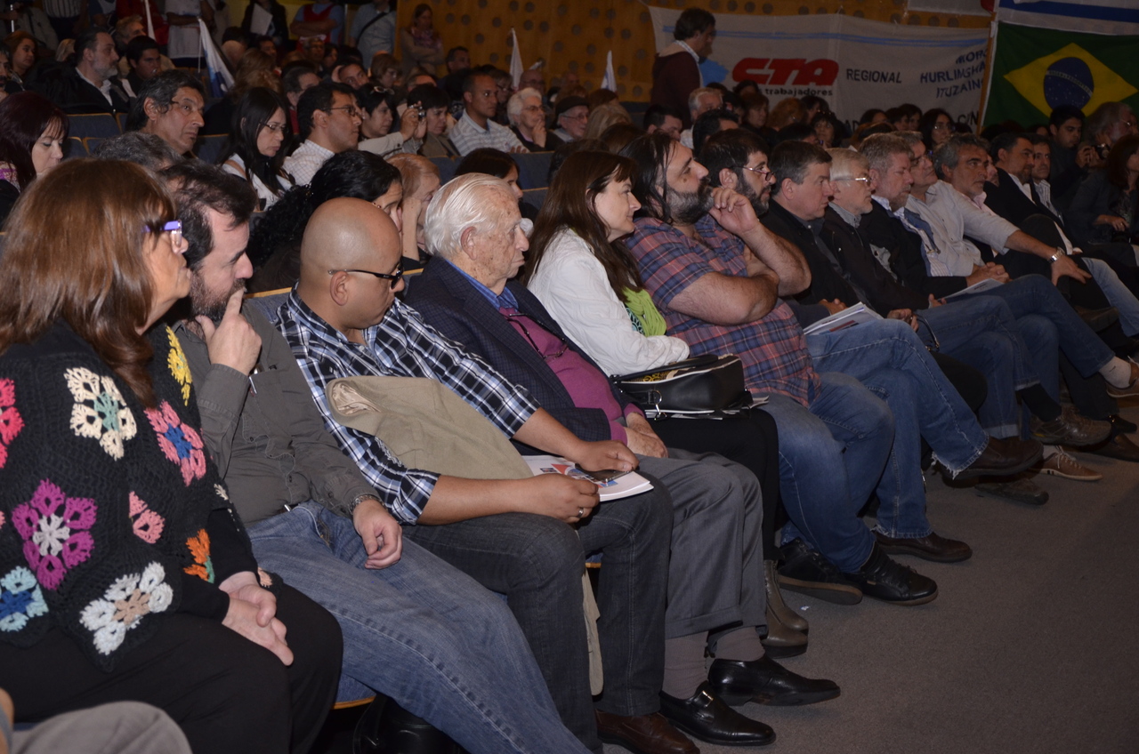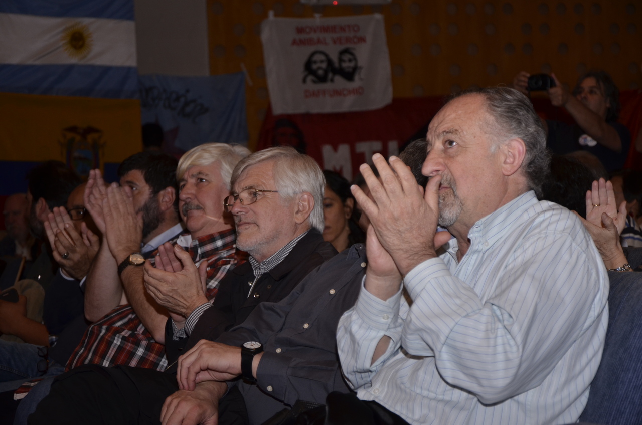 Los representantes sindicales provenientes de los paísies hermanos, trajeron su mensaje y se expresaron en este acto. Así lo hizo Fernando Pereyra de la PII-CNT Uruguay, trajo el saludo afectuso de los trabajadores de su país y expresó: "queremos decirles compañeros que hoy no hay contradicciones, el camino es siempre la izquierda, por más contradicciones que haya en el campo popular. Es obvio que falta mucho pero... el 22 de noviembre, en la Argentina, hay mucho en juego y se terminó el tiempo del complejo. No siempre cambiar es bueno y en este caso es un retroceso. Ya no hay medias tintas los gobiernos se tienen que mantener con una mayor distribución de la riqueza. El mensaje es la unidad y sólo la unidad del pueblo y el triunfo del 22".