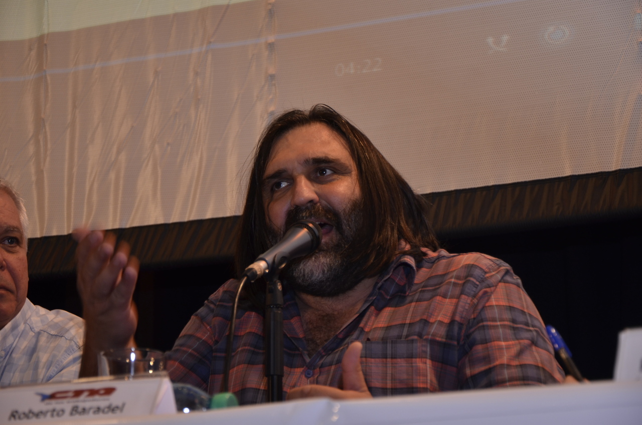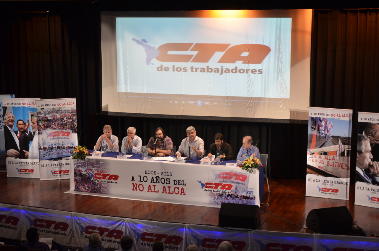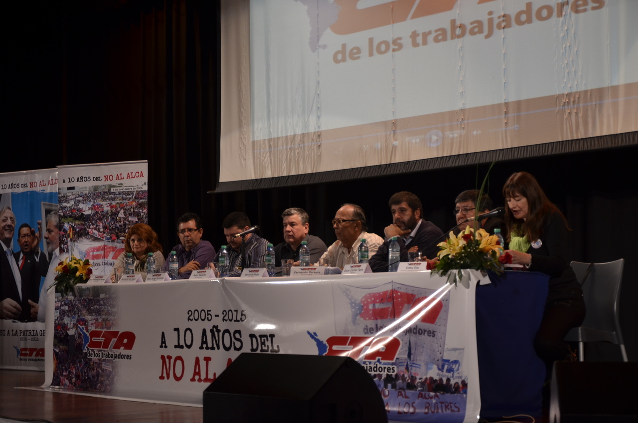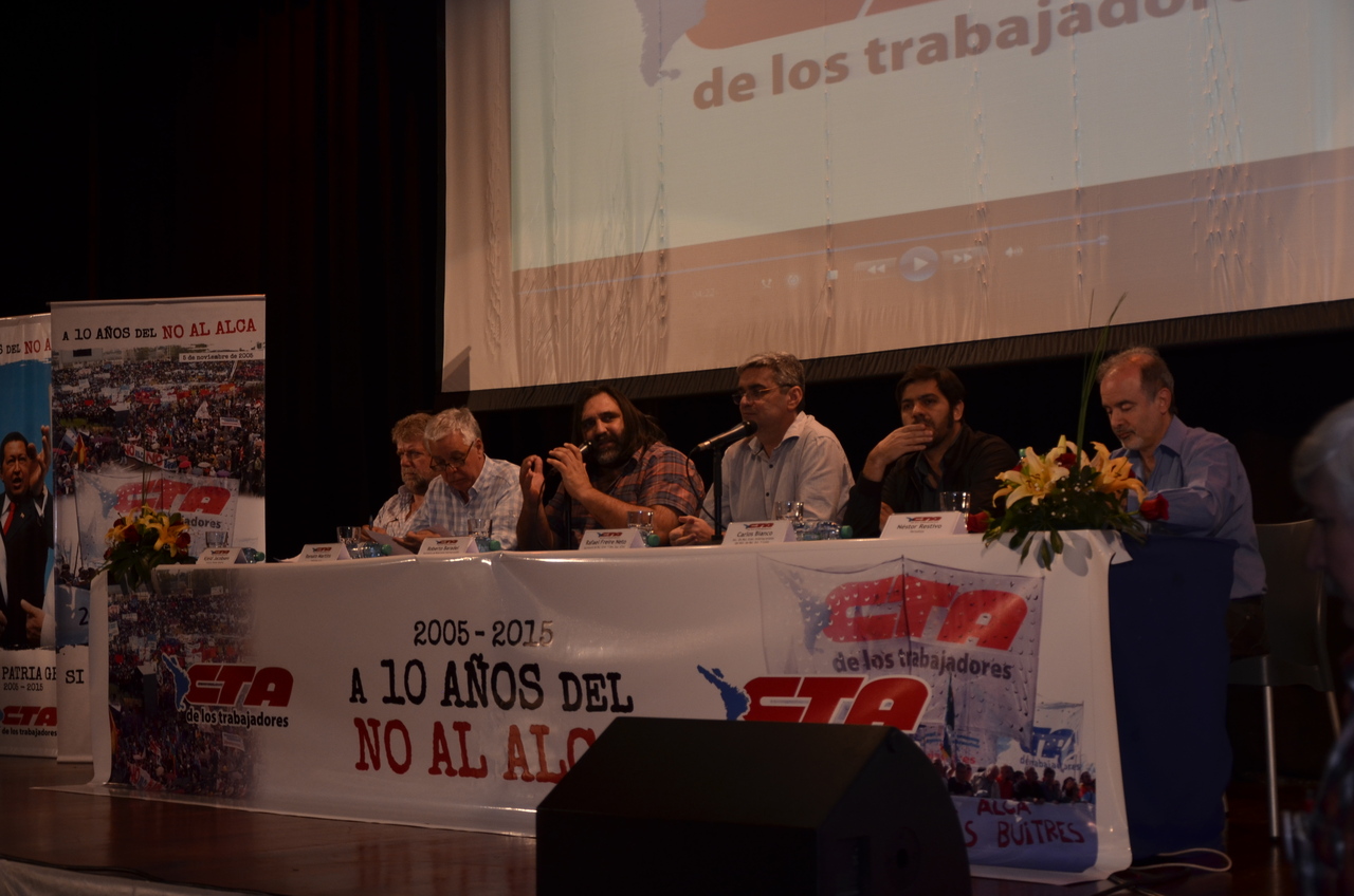 Roberto Baradel, Secretario General del SUTEBA y Secretario de Relaciones Internacionales de la CTA, dio la bienvenida "a las centrales sindicales de América Latina y de otros países, en un gesto de unidad de la Clase Trabajadora". "A diez años del No al ALCA, nos encontramos en este acto en un compromiso para sostener estos procesos políticos, cuando claramente avanzan otros tratados con el mismo espiritu del ALCA. Por eso decimos que hoy, más que nunca, redoblamos el esfuerzo de lucha de los trabajadores".