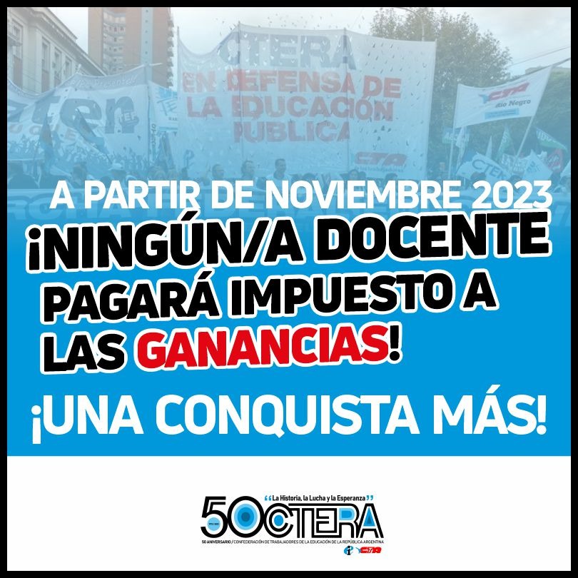 Desde la CTERA celebramos esta nueva conquista de lxs Trabajadorxs de la Educación de nuestra Organización, de los Sindicatos de nuestras provincias, de la CTA y de las Centrales obreras, que hemos luchado durante años para este logro.
