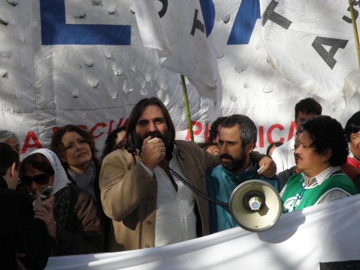 “Es central defender al BANCO NACIONAL DE DATOS GENÉTICOS que ha permitido la recuperación de la identidad de muchos chicos apropiados. Esto no es por un caso particular, sino que hay que defender la idoneidad y la seriedad de dicho Banco. Hoy, abogados inescrupulosos, grupos mediáticos y grupos económicos lo están atacando vilmente y, por eso, hacemos este abrazo, por el derecho a la Identidad “ remarcó Roberto Baradel.