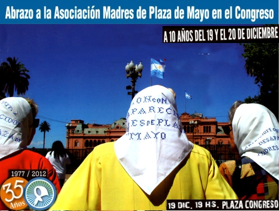 El reconocimiento a la Asociación Madres de Plaza de Mayo tendrá lugar en el Congreso Nacional el 19 de Diciembre a las 17 horas, en el salón de conferencias de la cámara de Diputados Delia Parodi, del Palacio del Congreso. Seguidamente, a las 19 horas, se realizará un abrazo y festejo popular en Plaza de los dos Congresos.