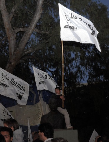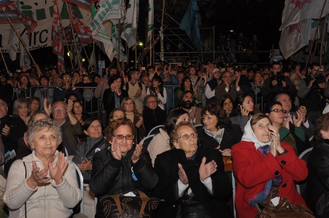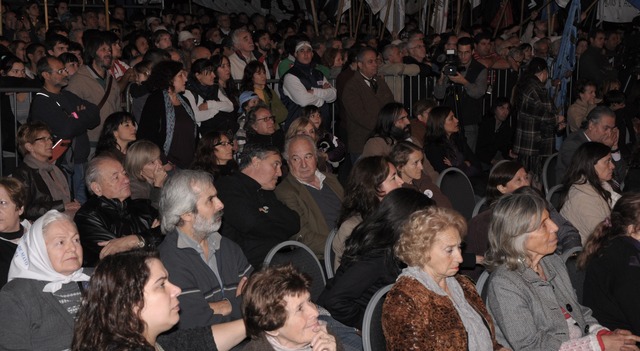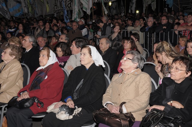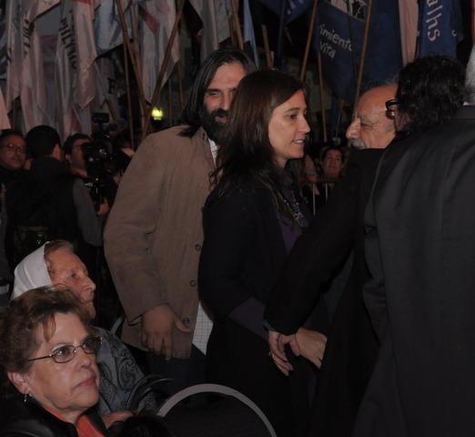 El segundo destinatario de su mensaje fue el Poder Judicial. “Esto no es un acto de presión. Estamos reclamando el derecho inalienable de ser libres, de Marcela, Felipe y los cuatrocientos nietos que no saben quiénes son.” “Tenemos la seguridad de que éste es un pueblo de lucha, que está de pie para defender la democracia”, agradeció, y cerró con “dos buenas nuevas”. La primera: la condena al ex policía Luis Falco. “Se hizo justicia, cárcel común”, gritó, y la plaza saltó con el himno de los juicios a represores: “Como a los nazis...”. La segunda “sugiere que algo bueno está por llegar: un apropiador, ex prófugo, detenido en Paraguay, el médico Atilio Bianco, va a ser extraditado”, anunció eufórica.