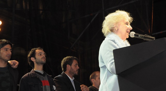 “Esta es una manera de pedirle a la justicia por la impunidad que tienen algunas personas, porque que estos tipos lleven diez años retrasando una causa por apropiación es una vergüenza”, aseguró Francisco Madariaga, uno de los Nietos. Victoria Montenegro, por su parte, destacó que el acto no era sólo de apoyo a las Abuelas sino “para pedir la verdad para un pueblo entero”: “Ya pasaron más de 30 años desde estos hechos y queremos pedirle al Estado que devuelva a los chicos que se robó y a la justicia en particular que esté a la altura de las circunstancias.”