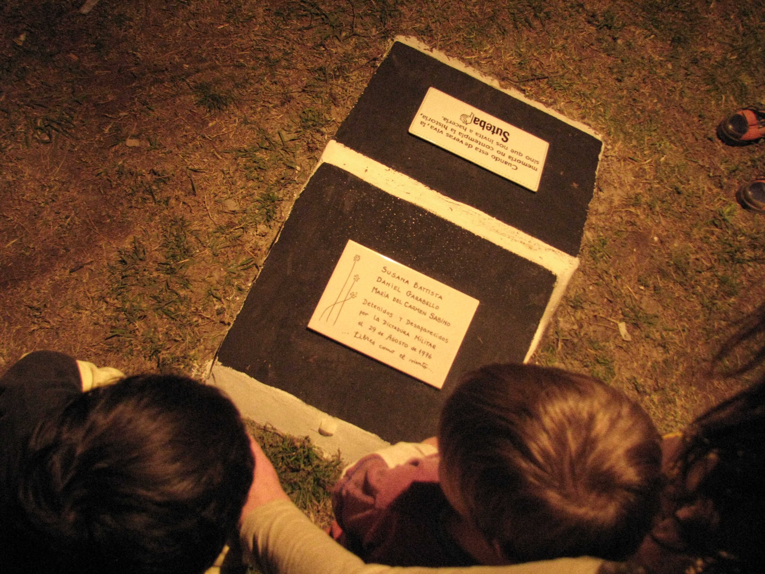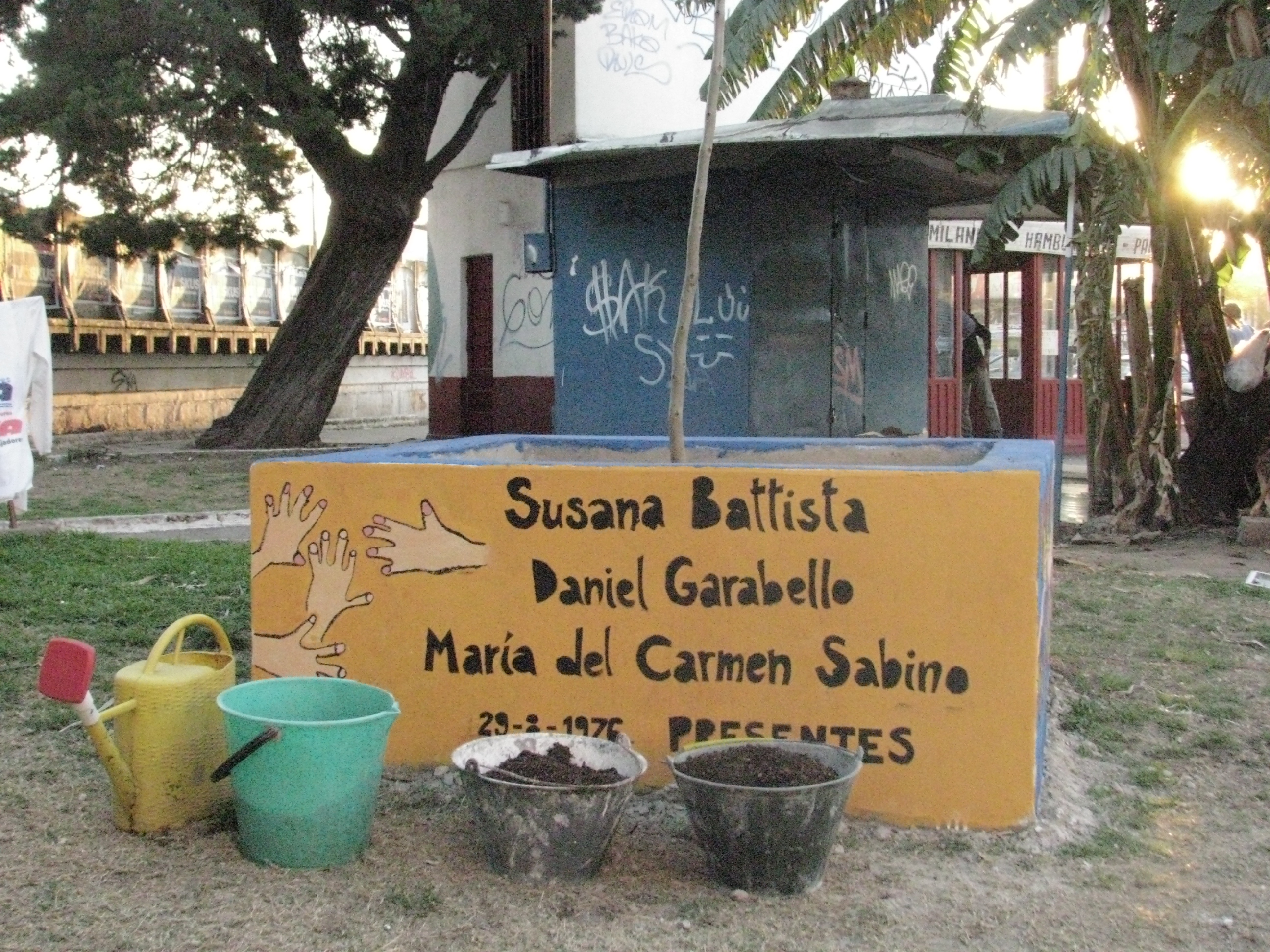 En memoria de los docentes desaparecidos, se descubrieron dos placas en la estación que fueron realizadas por una escuela estética de José Carlos Paz y cuya Directora es Graciela Cardozo, en la que trabajaron conjuntamente profesores, alumnos y vecinos de la zona. Además, para el cierre del acto en la estación, Rogelio De Leonardi, Secretario DDHH CTERA, plantó con todos los presentes un jacarandá, además de enviar los saludos de toda la Comisión Directiva del CTERA, especialmente por parte de la Secretaria General, Stella Maldonado.