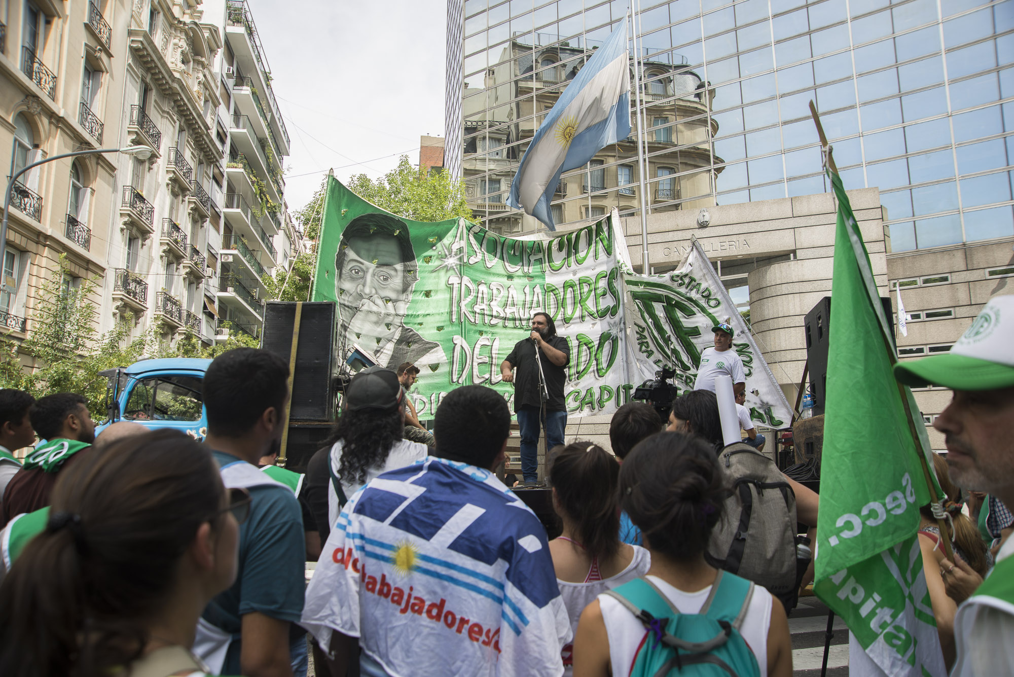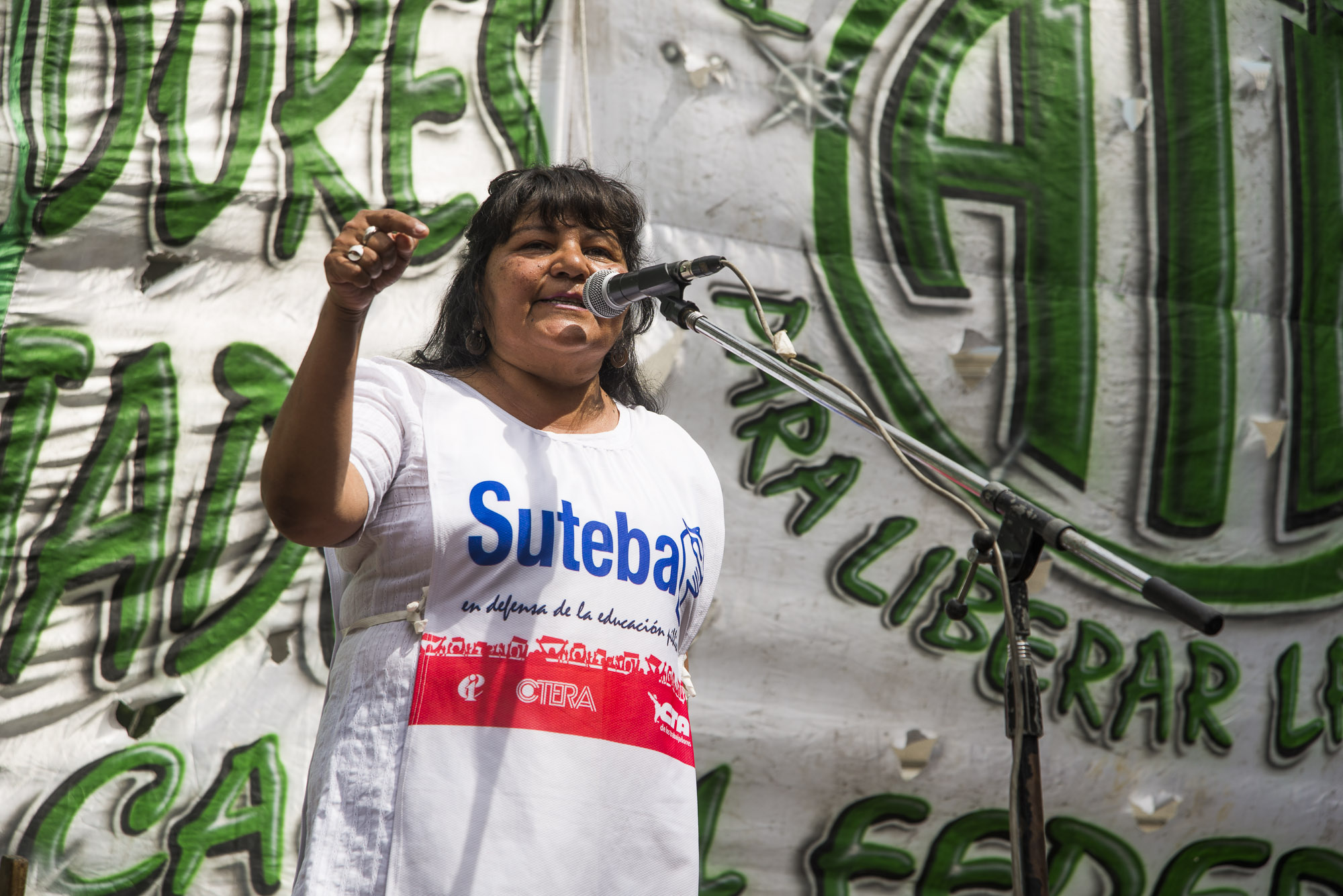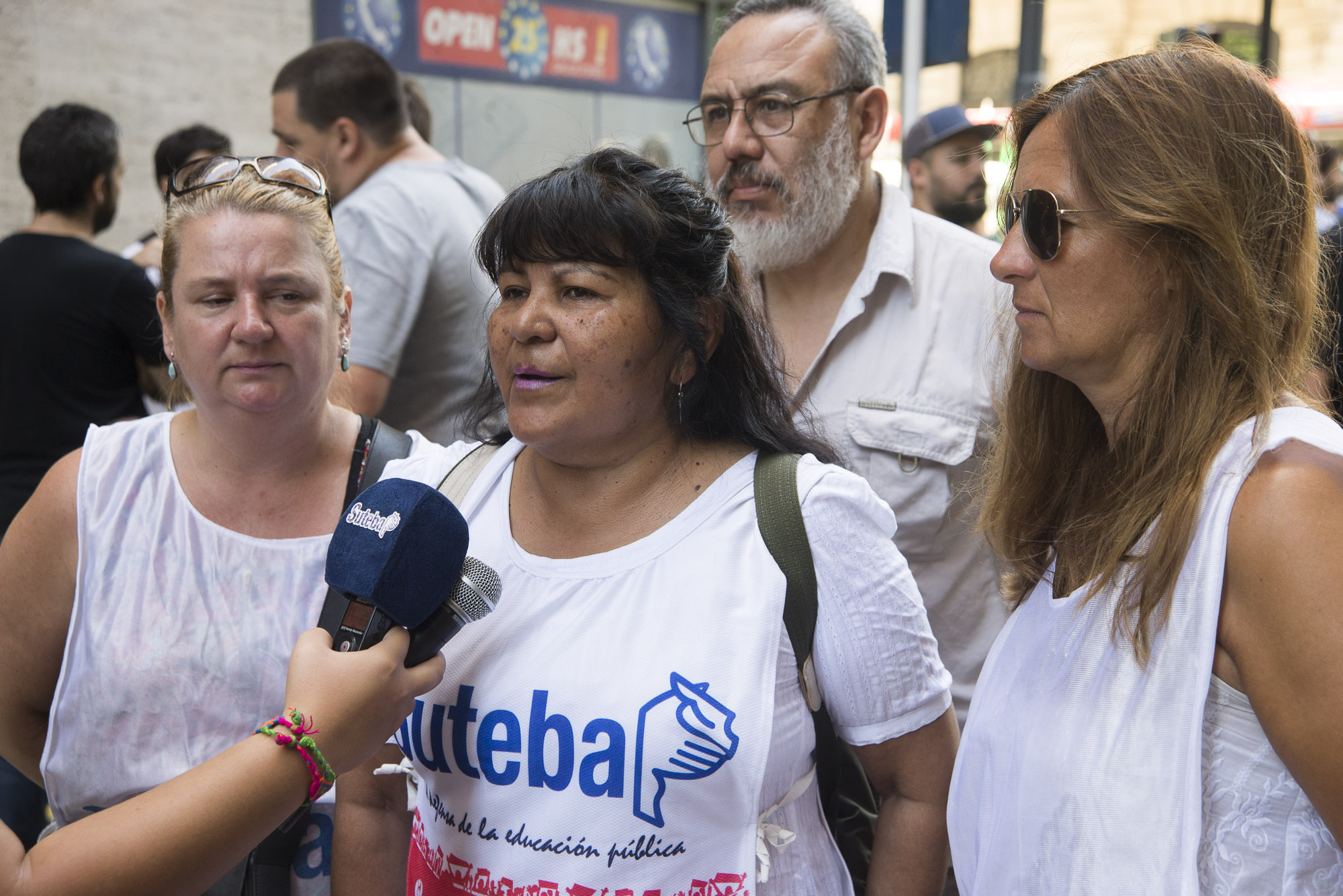 "No quieren ver la realidad que hoy en día vive la Educación argentina. Por eso estamos acá, denunciando el ajuste, los despidos y el avance del gobierno nacional sobre las políticas públicas que sostienen y garantizan el derecho a la Educación de nuestros chicos y chicas", destacó Silvia Almazán, Secretaria de Educación y Cultura de SUTEBA.