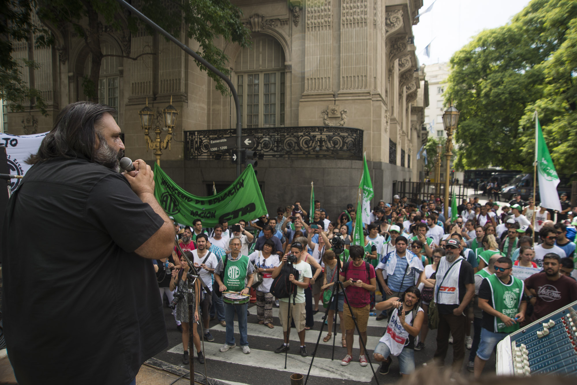 Por su parte, Roberto Baradel transmitió a todos los presentes: "Esta es un reclamo de todos y todas, por eso estamos acá. Es la pelea de la CTA, de CTERA y de SUTEBA; la pelea por la defensa de la Educación Pública. Rechazamos los despidos y exigimos, junto a los compañeros de ATE, la reincorporación de todos compañeros y compañeras a los que le han quitado su trabajo".