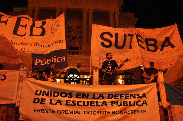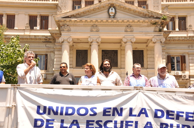 Allí, Roberto Baradel expresó: “La pelea que estamos dando es por la escuela pública. Necesitamos la creación de más escuelas secundarias, que arreglen las escuelas existentes, que pongan plata para infraestructura, y que nombren 20.000 cargos docentes para cubrir los equipos de orientación escolar, los bibliotecarios, los preceptores, los profesores de educación física, de educación artística, los jardines de infantes, las maestras integradoras, los maestros de escuelas técnicas, todos los cargos que sean necesarios para tener una escuela de calidad”.