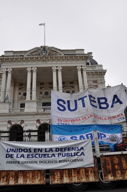 Luego de una vigilia donde numerosos docentes de la Provincia de Buenos Aires que integran el FGDB (SUTEBA-FEB-UDA-AMET-SADOP) permanecieron en la Carpa frente a la Gobernación desde la noche del 30 de noviembre, con lluvia durante la mañana de este 1º de diciembre y luego con altas temperaturas, miles de compañeros fueron llegando hasta la Plaza Italia, en La Plata, y marcharon primero la Legislatura Provincial, para culminar frente a la sede de la Casa de Gobierno y unirse a la Jornada de Protesta.