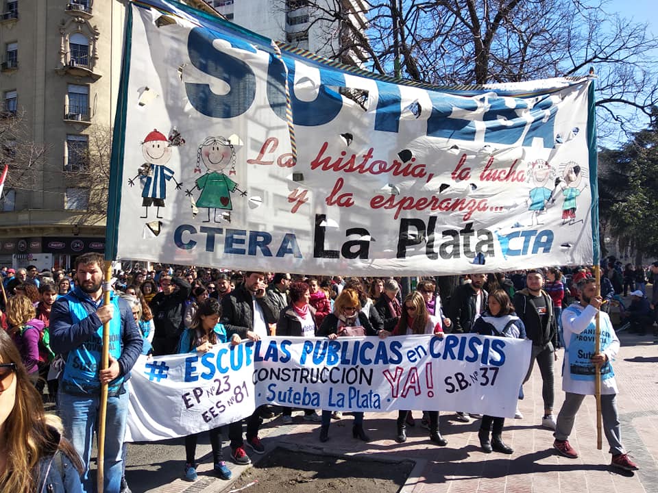 SUTEBA La Plata paró y se movilizó junto a ADULP, ATULP y FULP en defensa de la Educación Pública y luego con lxs compañerxs de Astilleros y sus familias.