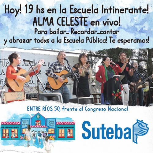 SUTEBA continúa luchando junto a todos los maestros, profesores y a la comunidad educativa. La alegría es nuestra trinchera. ¡Alma Celeste la hizo propagarse entre todos y todas!