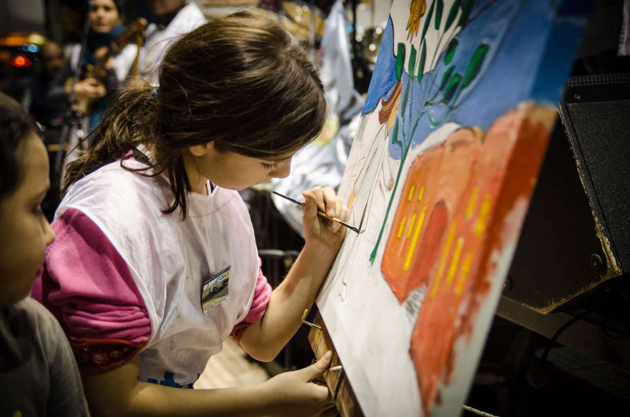 A la par de su música, otra docente pintó un cuadro, que ya forma parte de la Escuela Itinerante.