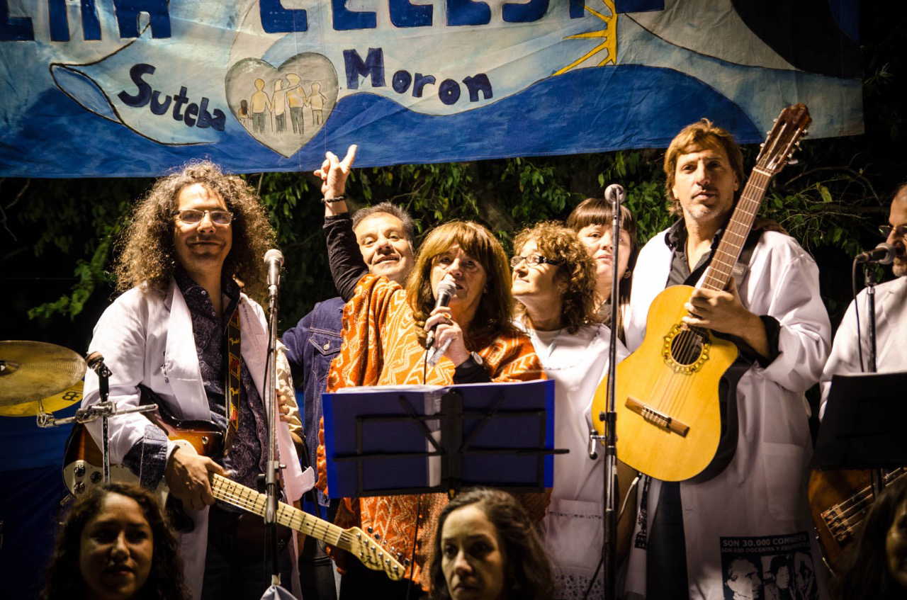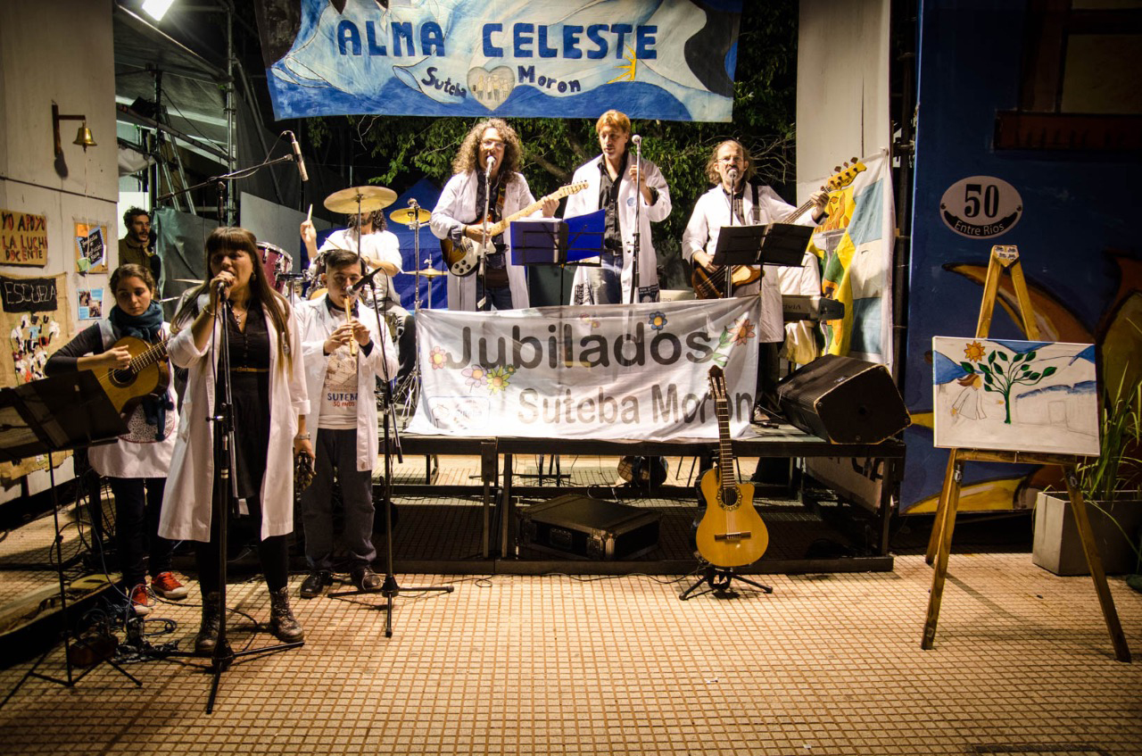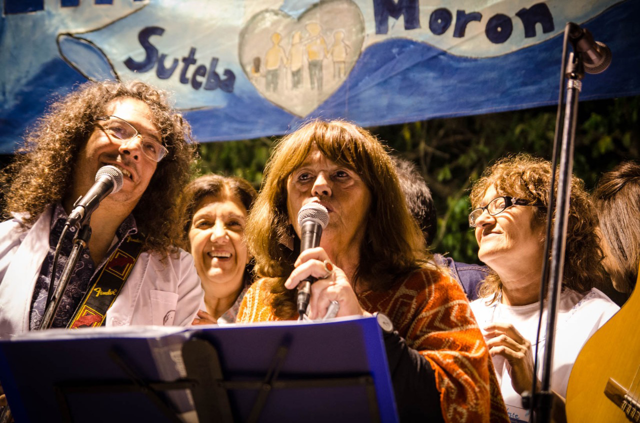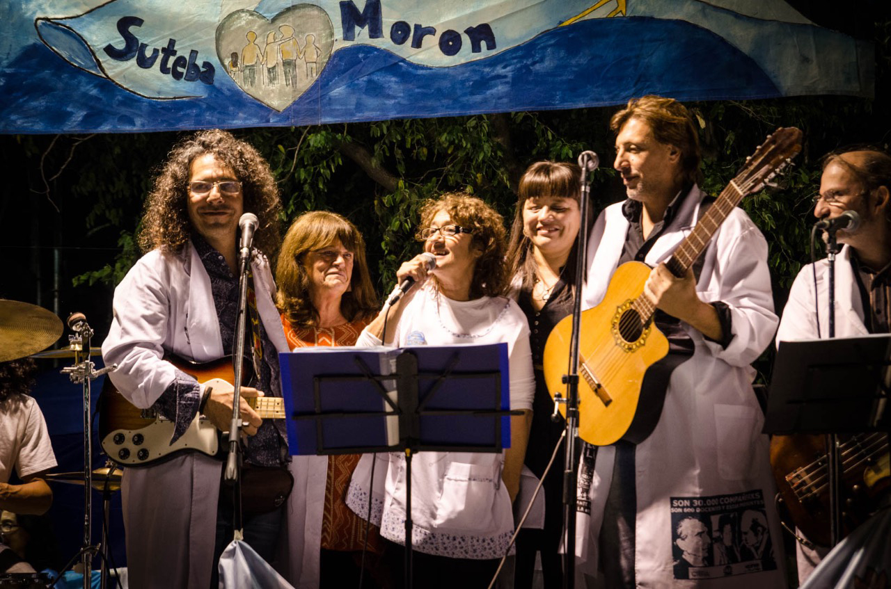 El grupo musical conformado por Profesores de Morón, representantes de los Maestros en SUTEBA, se presentó el viernes 24 a las 19 hs. en la Escuela Pública Itinerante; acompañados por la Secretaria General del distrito, Cristina Trinckler.