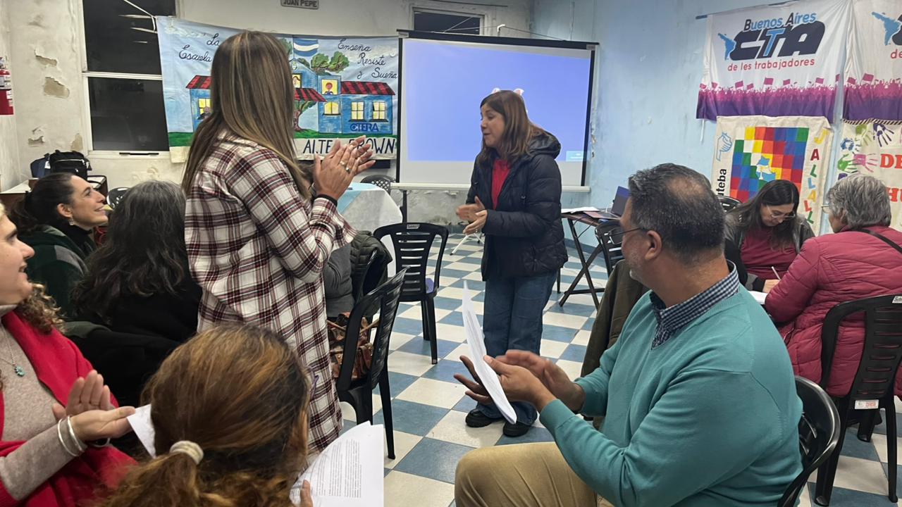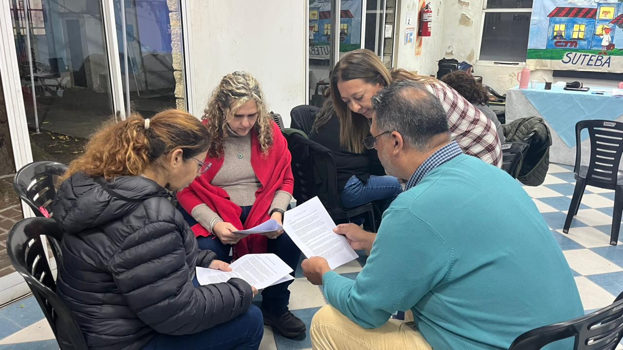 Por otra parte, el viernes 6 de junio la Secretaría de Educación compartió un encuentro de formación en el SUTEBA de Lomas de Zamora. Abrió la jornada el Secretario General de la Seccional y Secretario de Educación Técnica de SUTEBA Provincia, Javier Perín; con el acompañamiento de Laura Altamirano, Secretaria Provincial de Psicología; Ana Laura Tarchini, Secretaria de Educación del SUTEBA local y otrxs integrantes del Consejo Ejecutivo de la Seccional.
