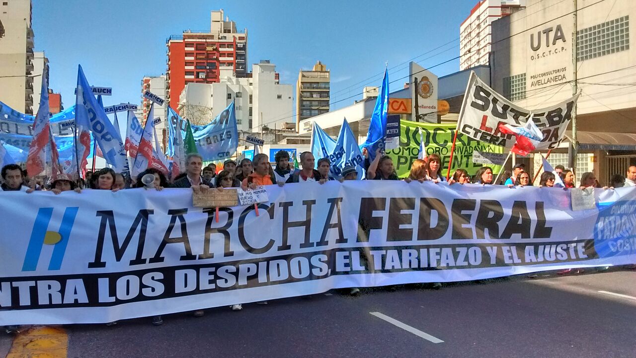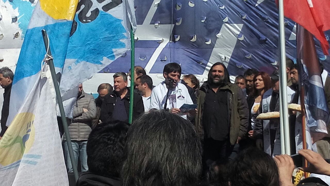 Las columnas multitudinarias de PATAGONIA ESTE y PATAGONIA OESTE y CUYO se agruparon en Plaza Alsina, Avellaneda, donde realizaron un acto a las 11 hs., allí Roberto Baradel, Secretario General de SUTEBA expresó: "Estamos emocionados, orgullosos de la respuesta de nuestro pueblo, esta marcha está superando todas nuestras expectativas" y agregó: "Los Trabajadores organizados no vamos a bajar la cabeza, somos los protagonistas caminando por ese Puente Pueyrredón. Acá, están presentes compañeros como Raimundo Ongaro, Felipe Vallese, Isauro Arancibia, los 30.000 compañeros detenidos-desaparecidos, los martires de trelew, Carlos Fuentealba, Maxi y Darío".
