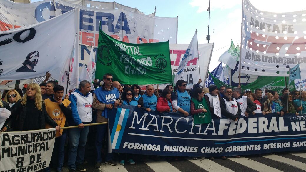 Por otra parte, las numerosas columnas NEA y NOA junto a otros marchantes que se van sumando desde distintos puntos y con la presencia de Hugo Yasky, Secretario General de CTA Nacional, y Sonia Alesso, Secretaria General de CTERA, realizaron un acto por la mañana, en el distrito de La Matanza. Desde allí, se trasladaron a Plaza Once, donde miles de manifestantes los aguardan para sumarse también a Plaza de Mayo.