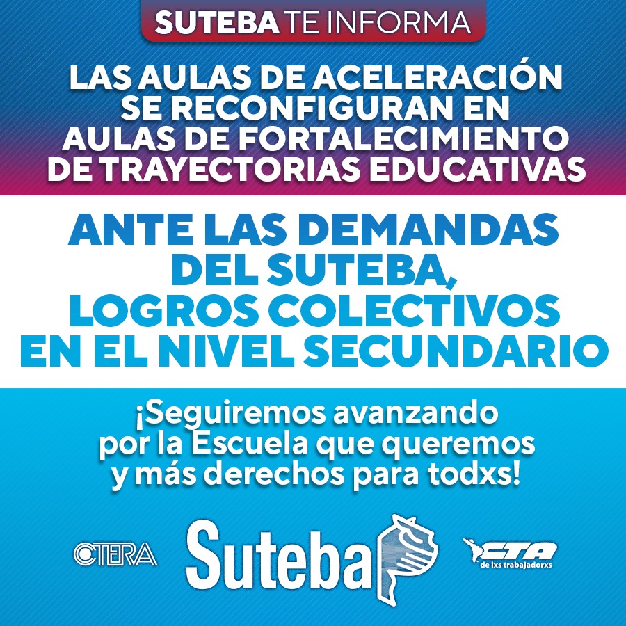 Fruto de nuestros reclamos, la Dirección elaboró una nueva propuesta denominada "Aulas de Fortalecimiento de Trayectorias Educativas" que viene a reemplazar el formato de las Aulas de Aceleración vigentes desde el año 2018.