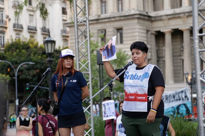 Este martes 7 de marzo, el SUTEBA y la CTERA estuvieron presentes en Plaza Lavalle en la Asamblea Feminista de mujeres y diversidades, en la que se expresaron diversas Organizaciones Sindicales, Sociales y Políticas.