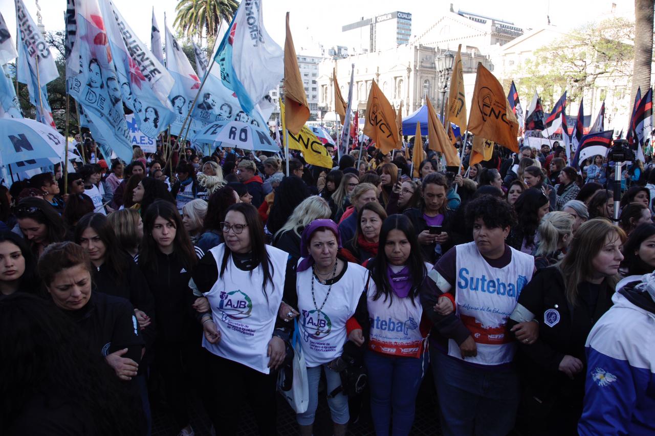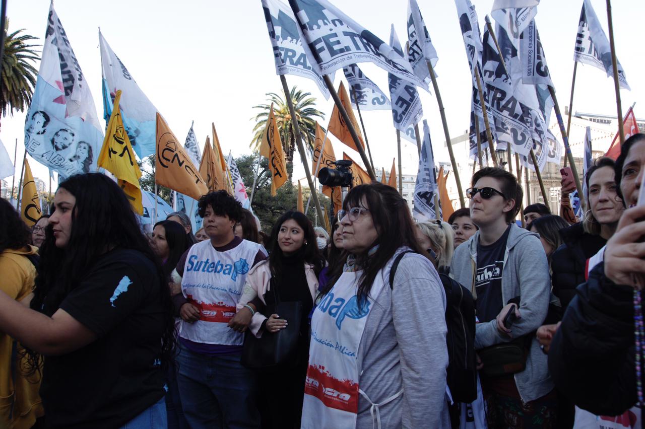El miércoles 28 de septiembre, el SUTEBA, la CTERA y la CTA de lxs Trabajadorxs se concentraron en Plaza Lavalle junto a otras Organizaciones Sindicales, Sociales y Feministas para exigir una Reforma Judicial, una Corte igualitaria y justa y la Democracia del sistema judicial.