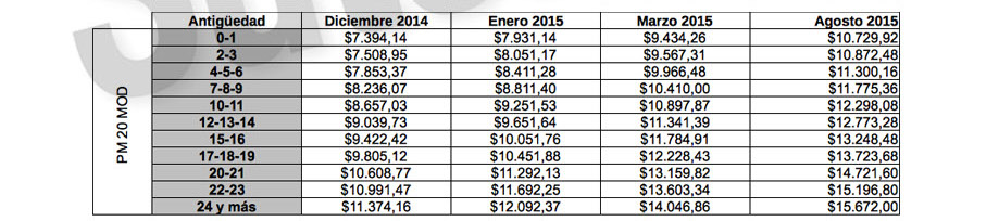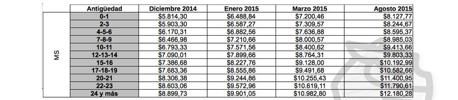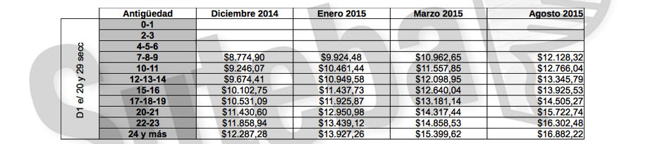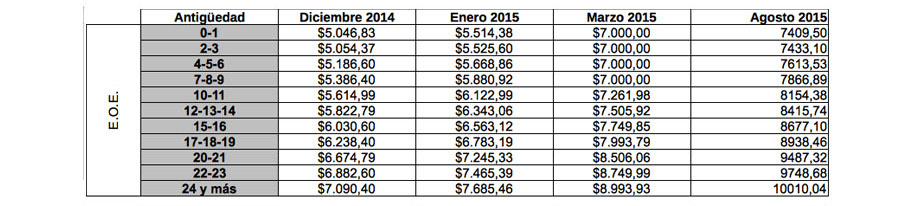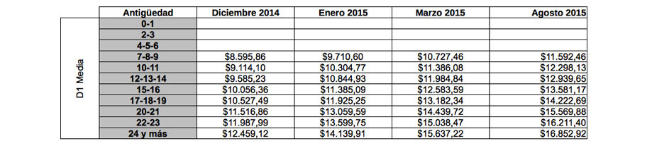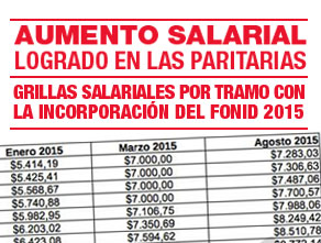 AUMENTO SALARIAL LOGRADO EN LAS PARITARIAS 2015