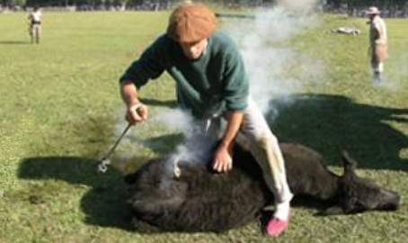 La marcación del ternero es uno de los espectáculos más singulares de las pampas, pleno de dinamismo, de emoción y policromía. Es la concreción de la propiedad, es la escena donde el ternero recibe dolorido por la quema del hierro candente, las insignias que indicarán su pertenencia al dueño de su vida...