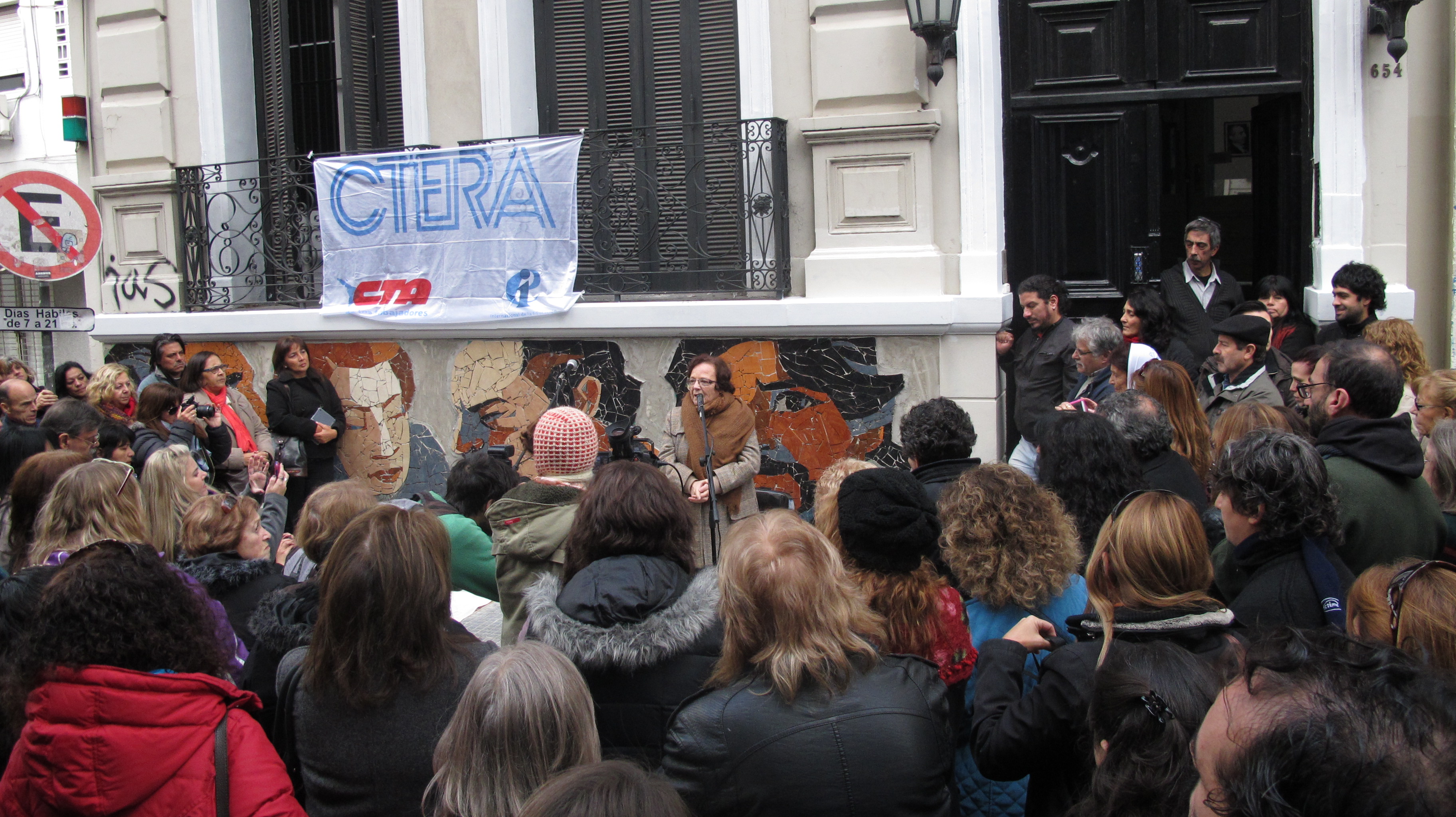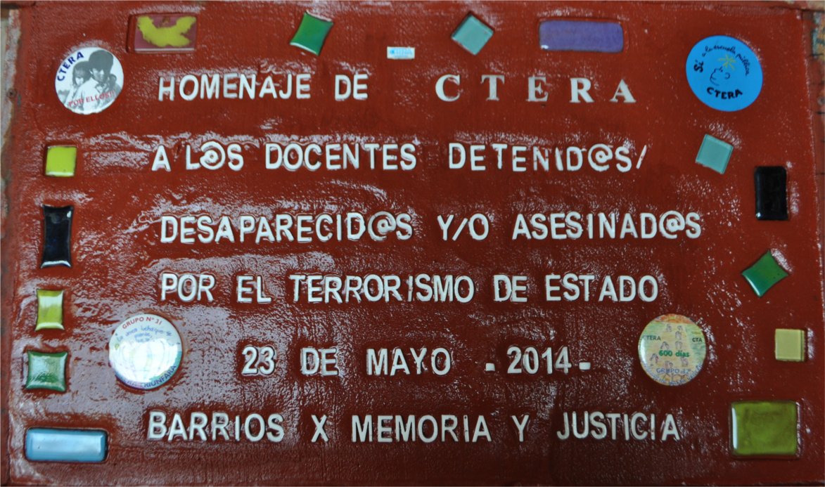 Cabe recordar que desde la CTERA y el SUTEBA, junto a los compañeros de "Barrios por Memoria y Justicia" y la "Comisión de la Memoria del Barrio de San Telmo", el sábado 10 en la sede del SUTEBA se había iniciado la confección de la Baldosa por los más de 600 docentes detenidos desaparecidos a nivel nacional.