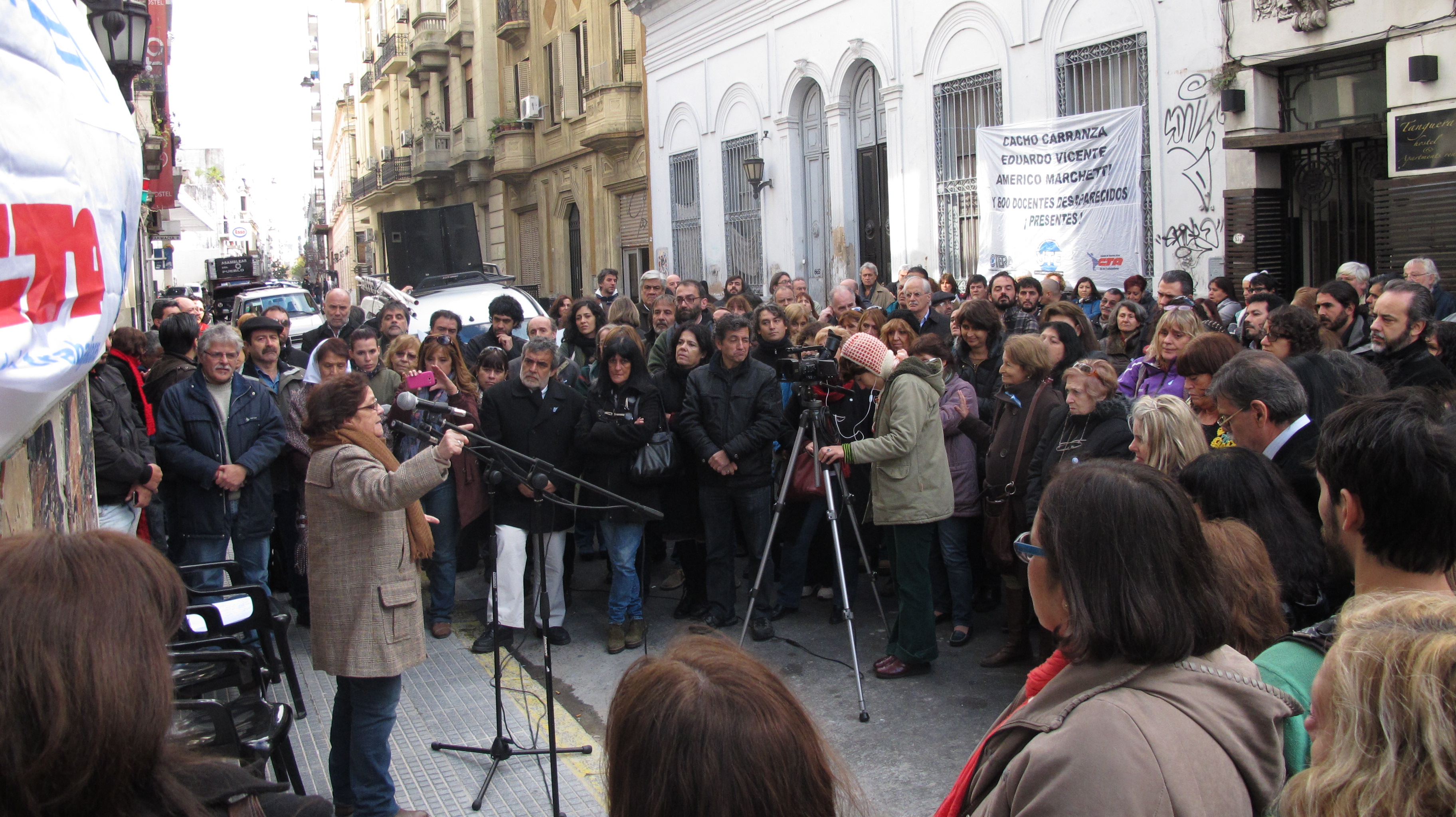 El acto fue encabezado por Taty Almeida, Madre de Plaza de Mayo Línea Fundadora, y Stella Maldonado, Secretaria General de CTERA, quienes estuvieron acompañadas por familiares de detenidos desaparecidos, ex detenidos, representantes de organismos de Derechos Humanos, legisladores, dirigentes sindicales y sociales.