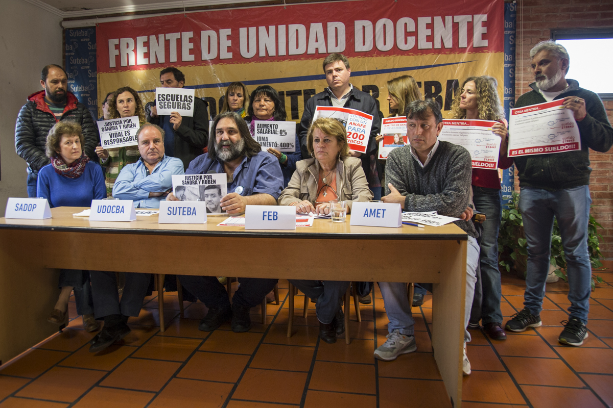 En el marco del inicio del Paro Docente de 72 hs. en toda la Provincia, lxs dirigentes sindicales del Frente de Unidad Docente Bonaerense reiteraron en conferencia de prensa los urgentes reclamos de lxs Trabajadorxs de la Educación.