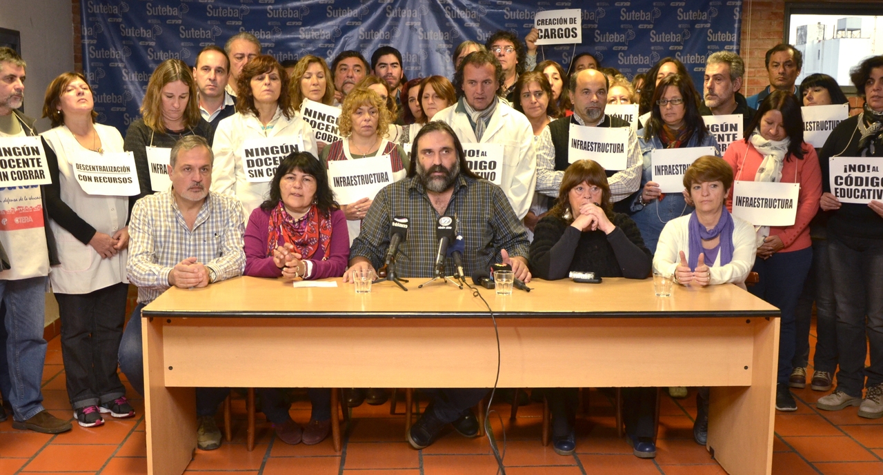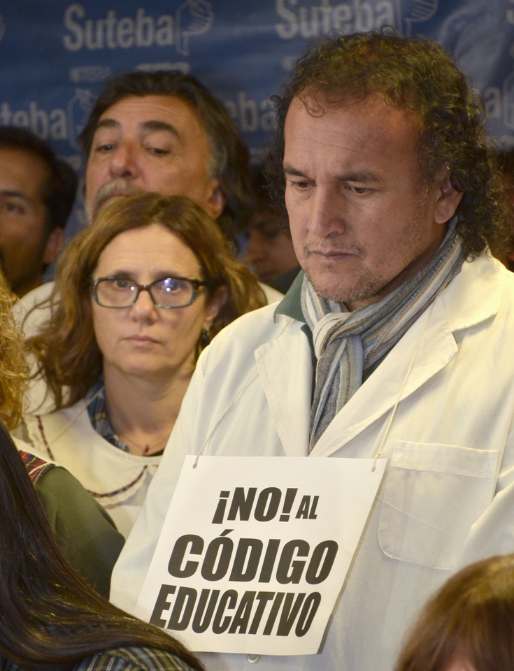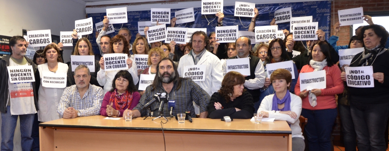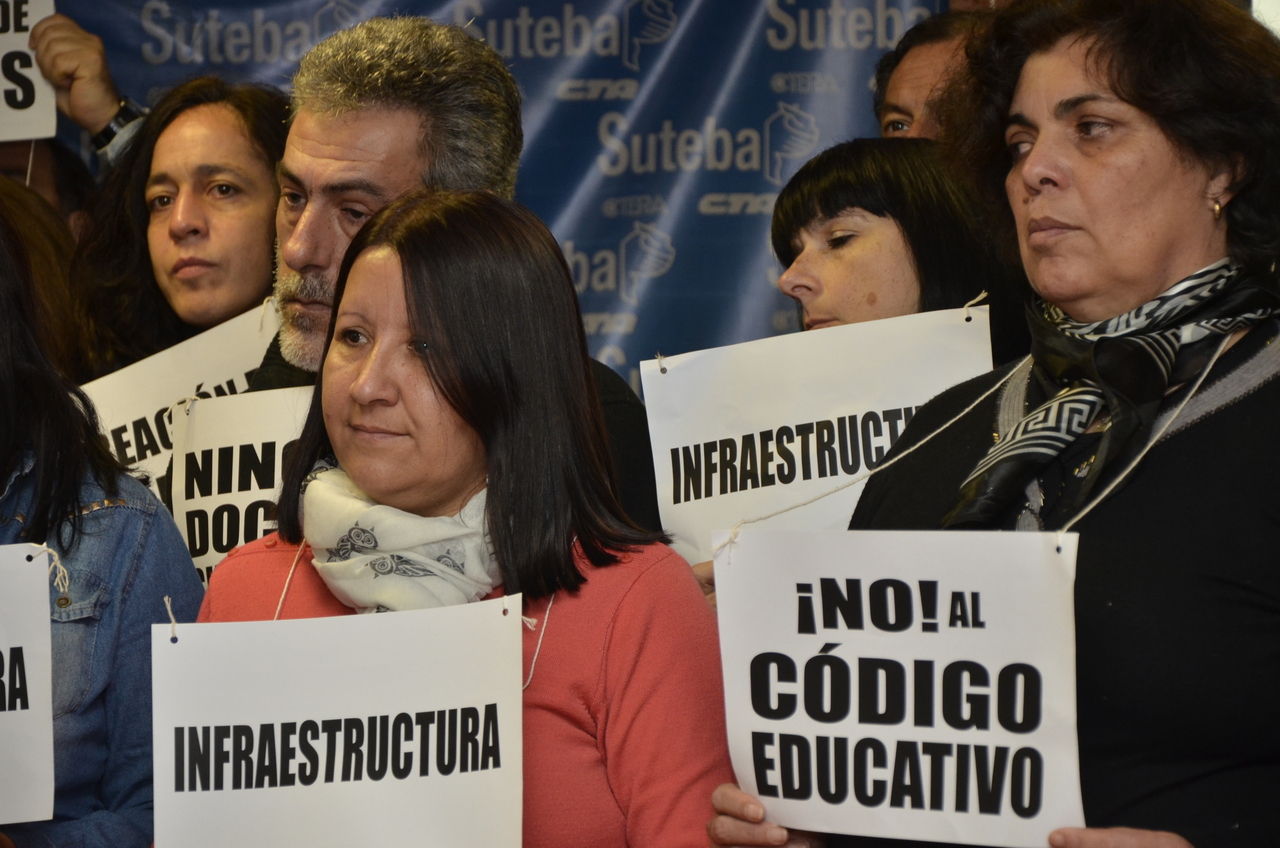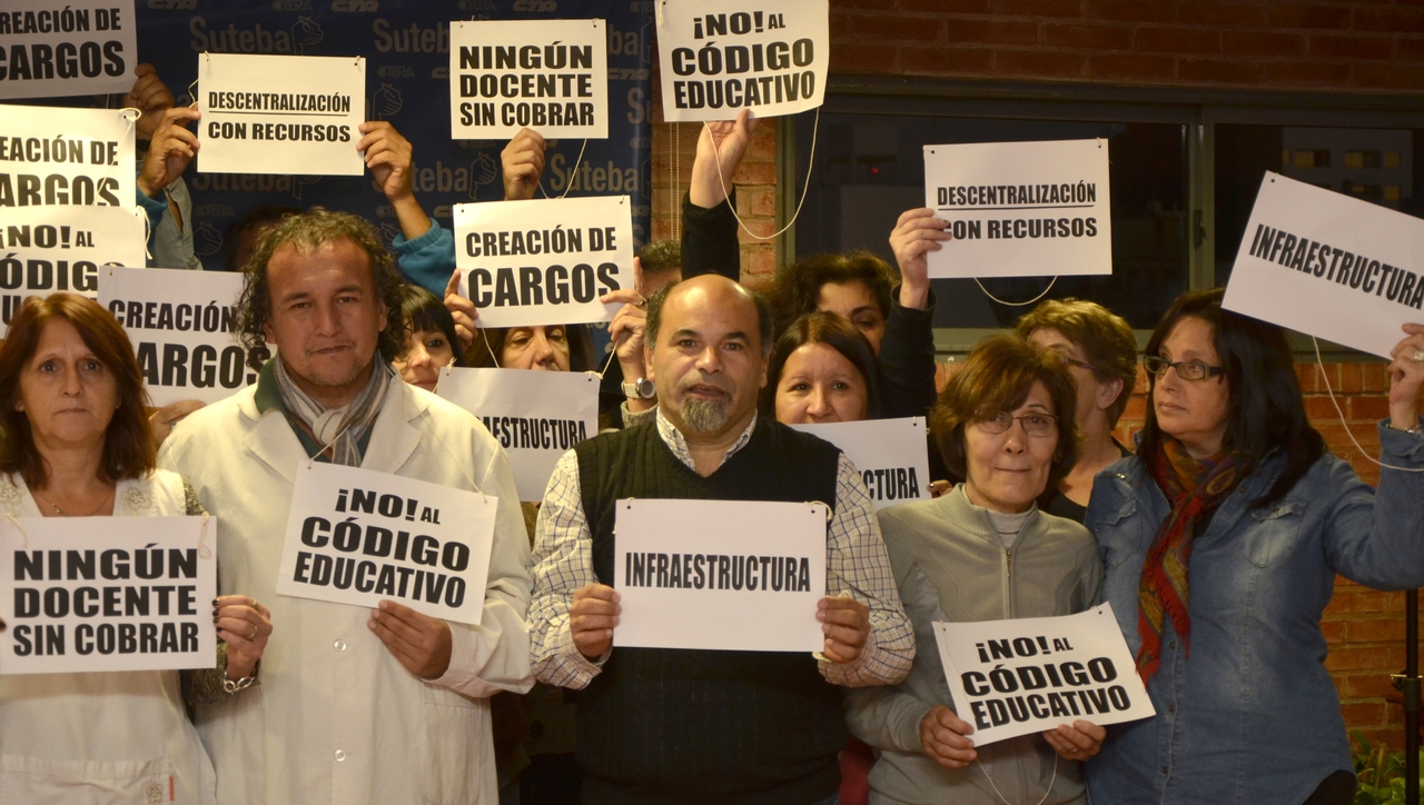 De acuerdo a otro punto, el Secretario General dejó expresa la postura del SUTEBA sobre el Código Educativo: "Nosotros estamos absolutamente en desacuerdo porque creemos que avanza sobre las condiciones laborales de los trabajadores de la educación. Para eso hay una paritaria, para eso hay un Estatuto del Docente y para eso están las Leyes Provinciales y Nacionales de la Educación".