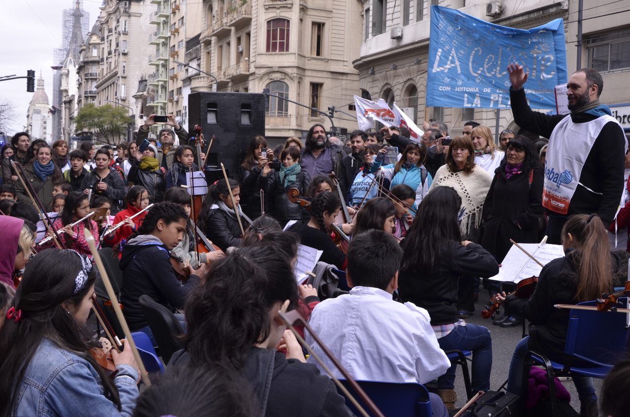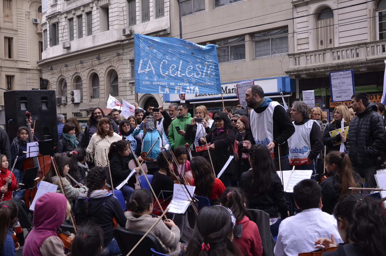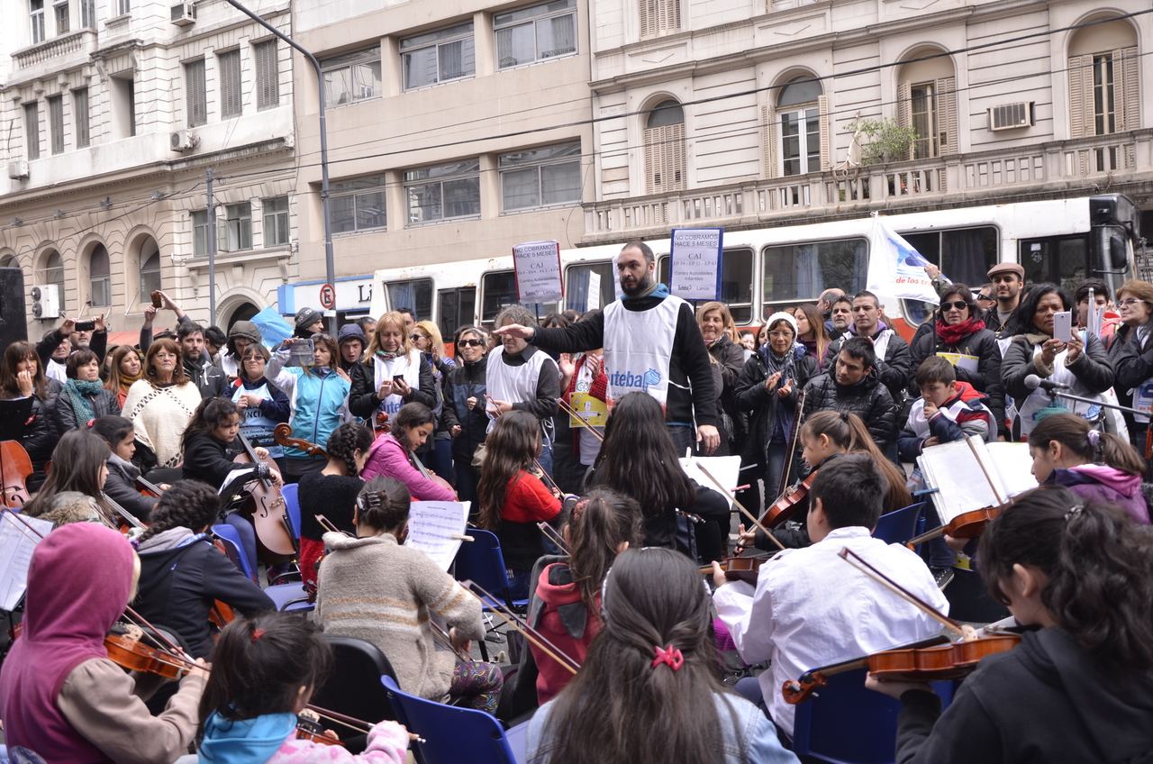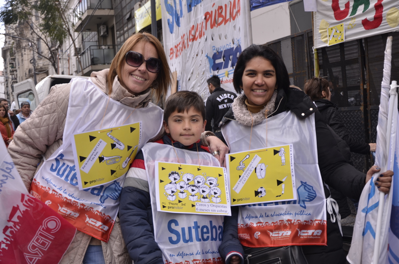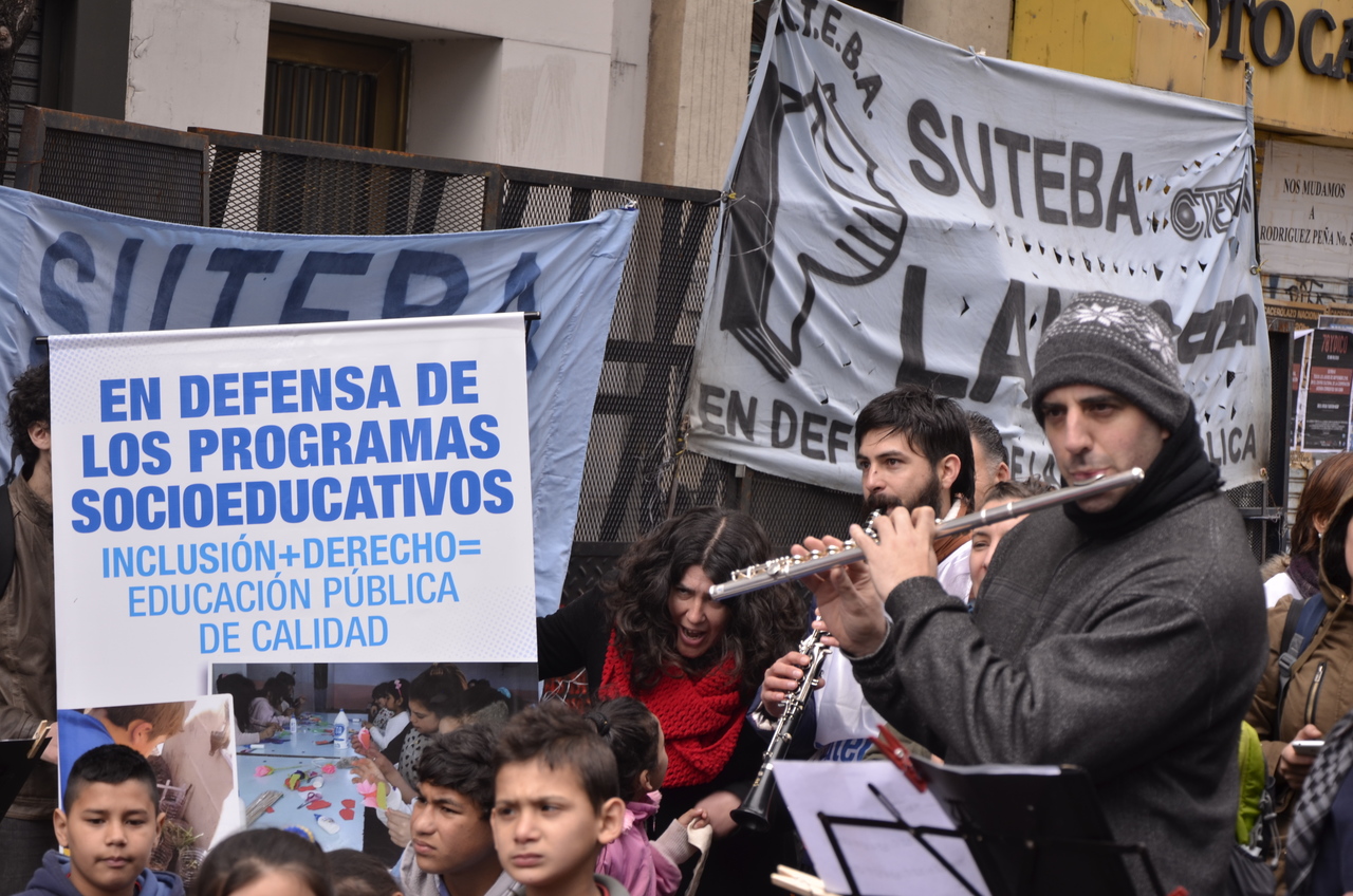 Asimismo, el Secretario General del SUTEBA, Roberto Baradel, tomó la palabra: "Nos movilizamos por la insensibilidad que demuestran el Gobierno Provincial y Nacional, quienes están desmantelando los Programas Socioeducativos. Los chicos pueden dar mucho, hay que agradecerles por los acordes muy bonitos que tocan. Sus papás y nosotros estamos orgullosos de ustedes, como también de sus profesores que construyen Escuela Pública día a día".