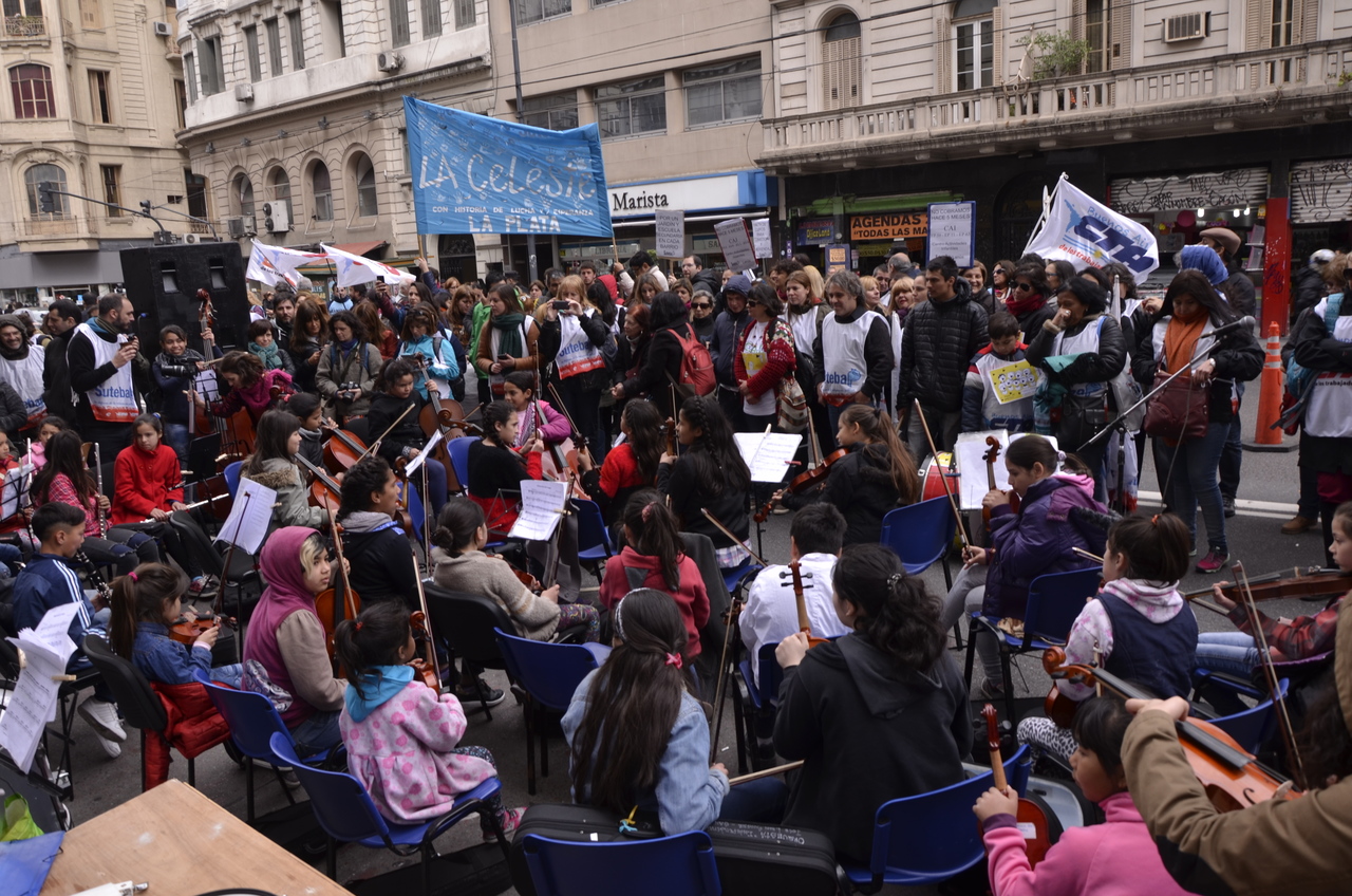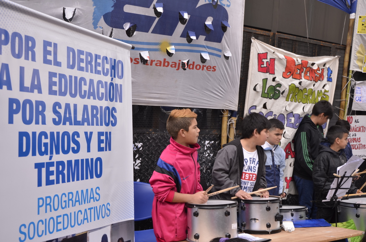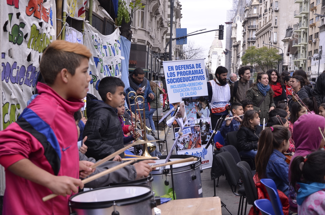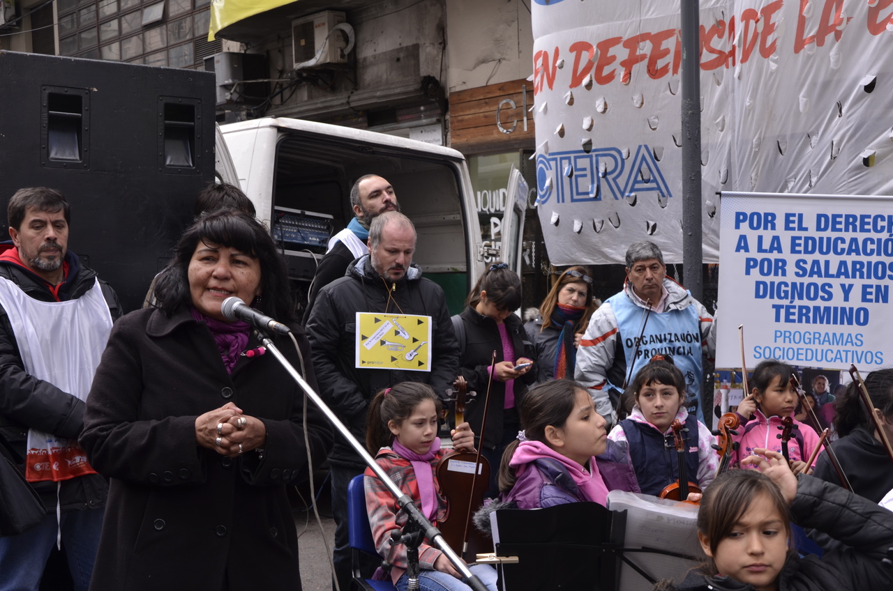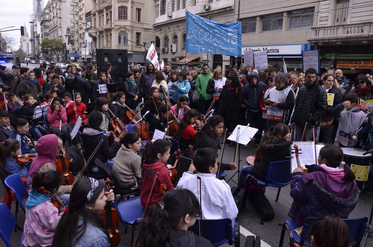 Los chicos le pusieron música a la jornada interpretando canciones con sus instrumentos, dando muestra de lo que aprendieron con estos programas y demostrando lo que puede dar la Educación Pública con Docentes que trabajan en proyectos pedagógicos que incluyen y ponen como marco el ejercicio de derechos. Junto a ellos estaban presentes sus profesores, quienes se hicieron presentes desde distintos puntos de la Provincia para denunciar el vaciamiento que está llevando adelante el Gobierno Provincial de María Eugenia Vidal, responsable también de no pagarles sus salarios en tiempo y forma desde hace seis meses.