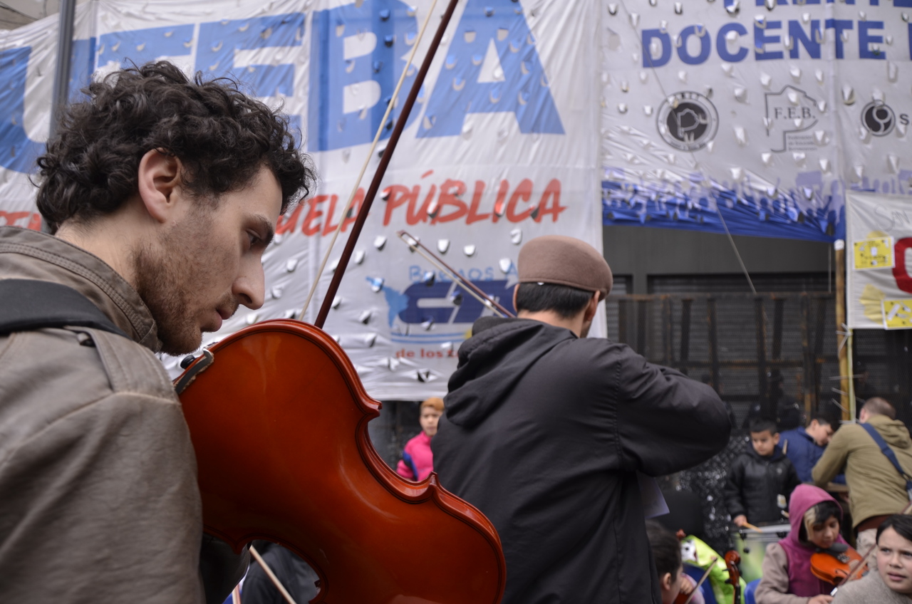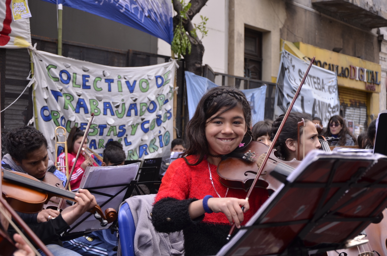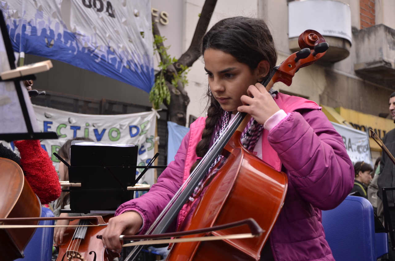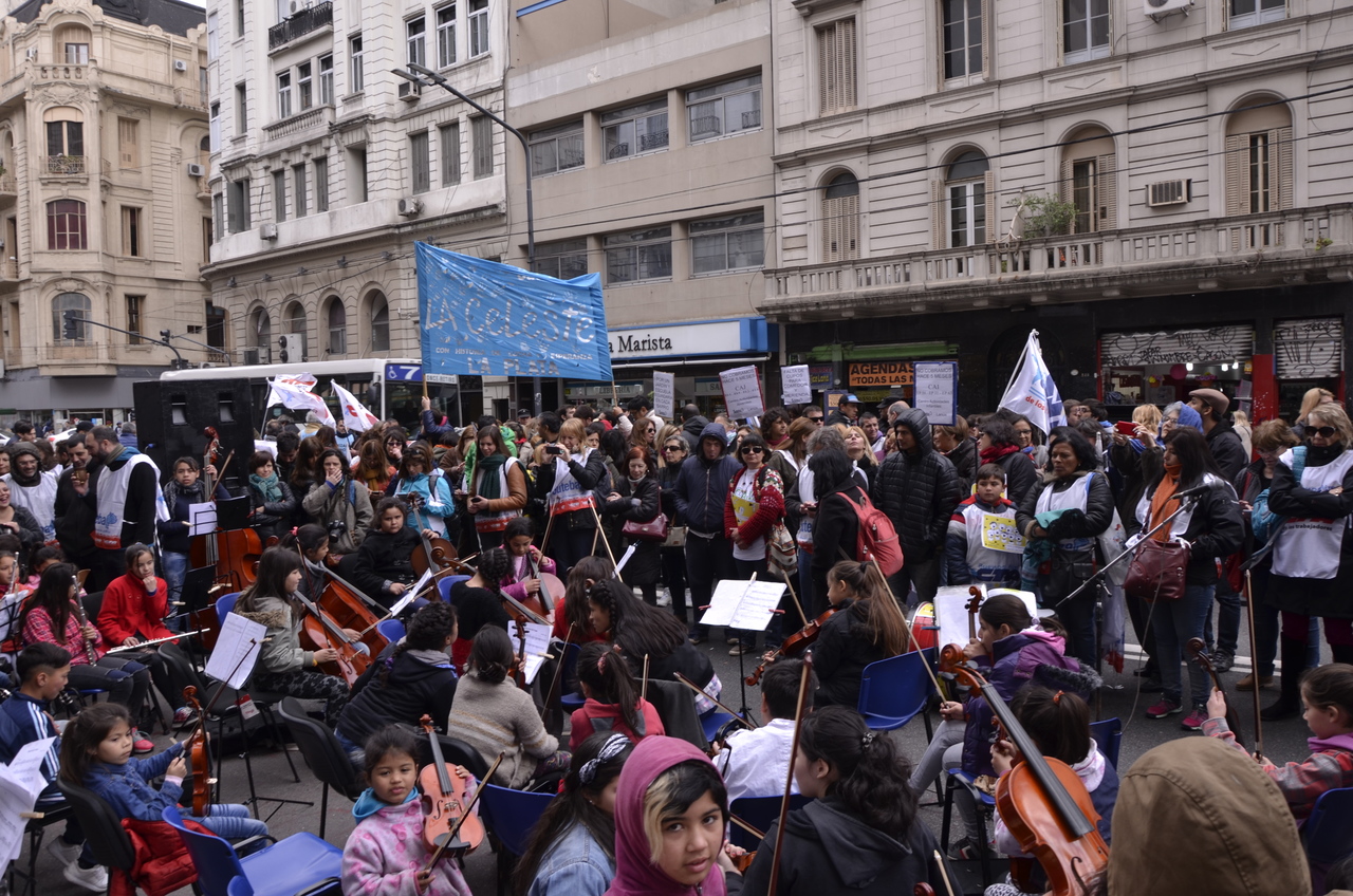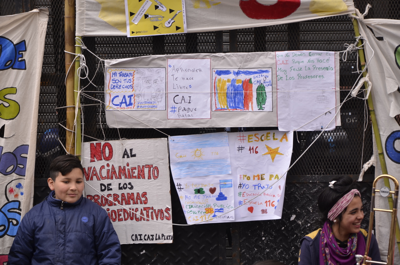 Los chicos le pusieron música a la jornada interpretando canciones con sus instrumentos, dando muestra de lo que aprendieron con estos programas y demostrando lo que puede dar la Educación Pública con Docentes que trabajan en proyectos pedagógicos que incluyen y ponen como marco el ejercicio de derechos. Junto a ellos estaban presentes sus profesores, quienes se hicieron presentes desde distintos puntos de la Provincia para denunciar el vaciamiento que está llevando adelante el Gobierno Provincial de María Eugenia Vidal, responsable también de no pagarles sus salarios en tiempo y forma desde hace seis meses.