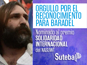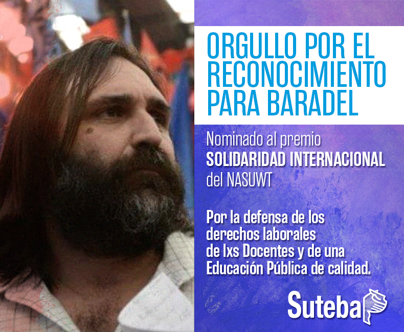 Nuestro Secretario General, Roberto Baradel, fue nominado al premio "Solidaridad Internacional" por principal sindicato docente del Reino Unido, Nasuwt. Este honor es un reconocimiento a figuras de todo el mundo que representan la defensa de la educación y de los derechos de lxs Trabajadorxs de la Educación, como también por su compromiso con los derechos humanos, los valores de solidaridad, igualdad y democracia.