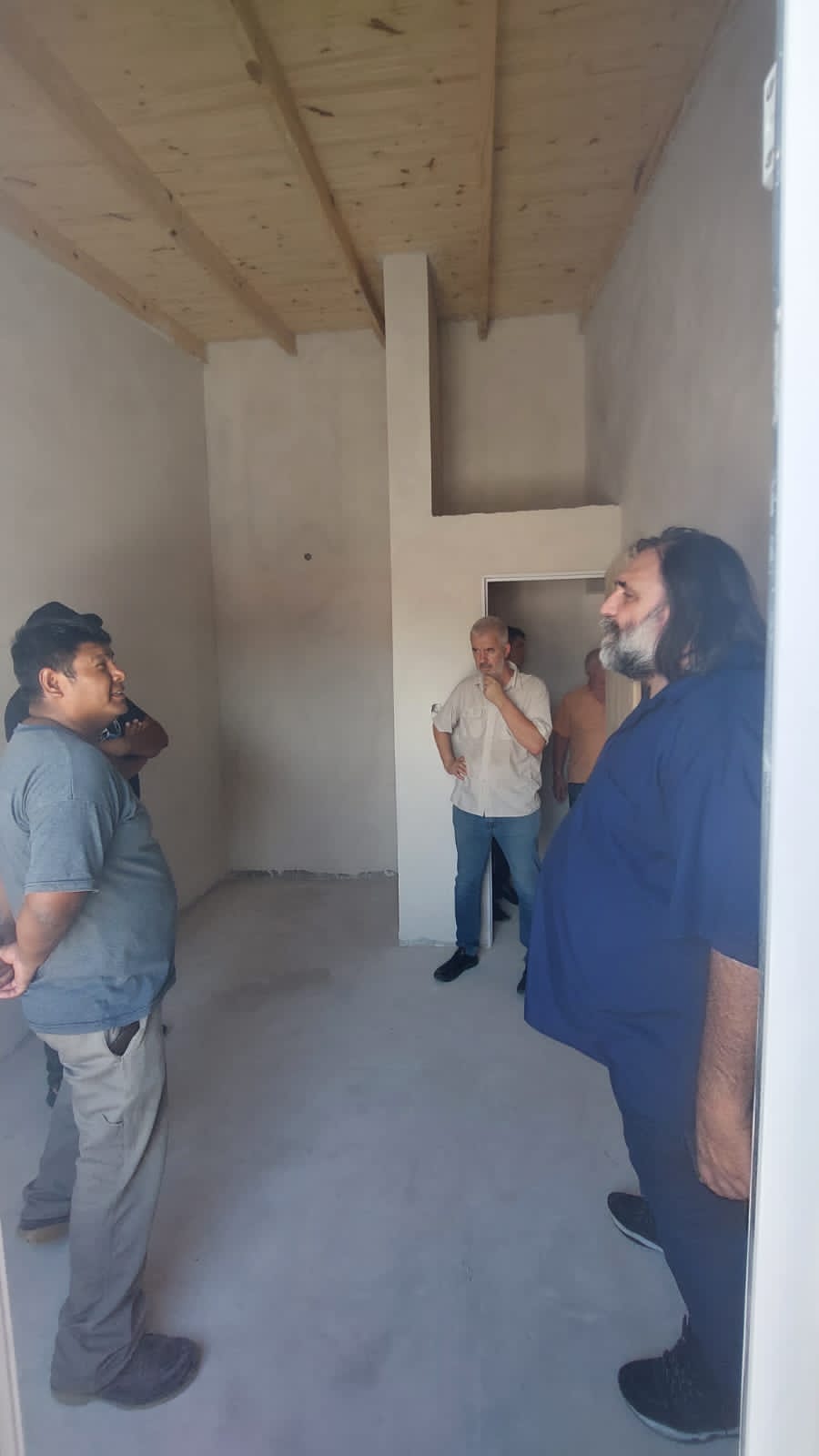 Luego recorrió los tres barrios de Coopteba en Patagones. En uno de ellos, conversó con lxs Trabajadorxs de la cooperativa COTRAUCO, responsable de la construcción de las viviendas, que a su vez son alumnxs del Centro de Formación Profesional distrital.