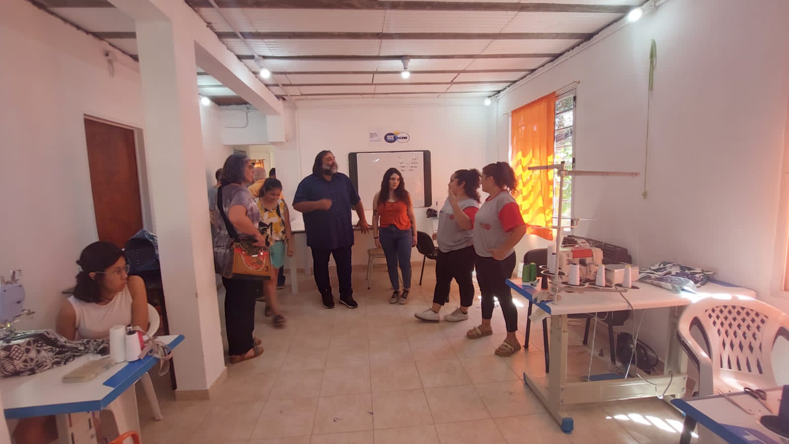 En su visita a ÍNTEGRA, Baradel recorrió las instalaciones de la cooperativa, que fabrica remeras y realiza arreglos de ropa, y conversó con lxs Trabajadorxs.