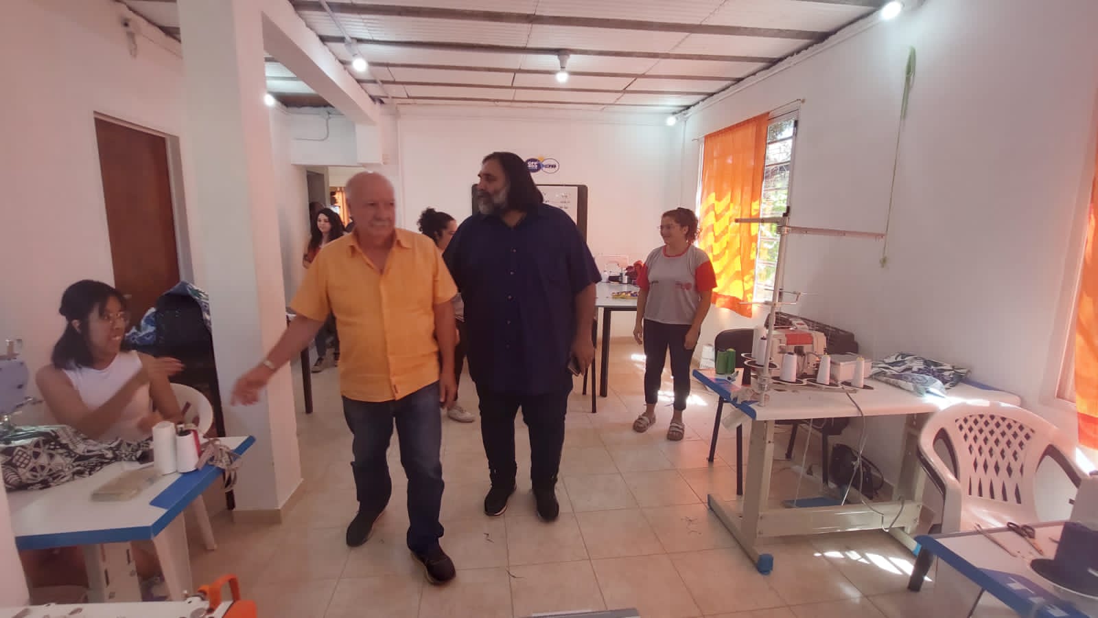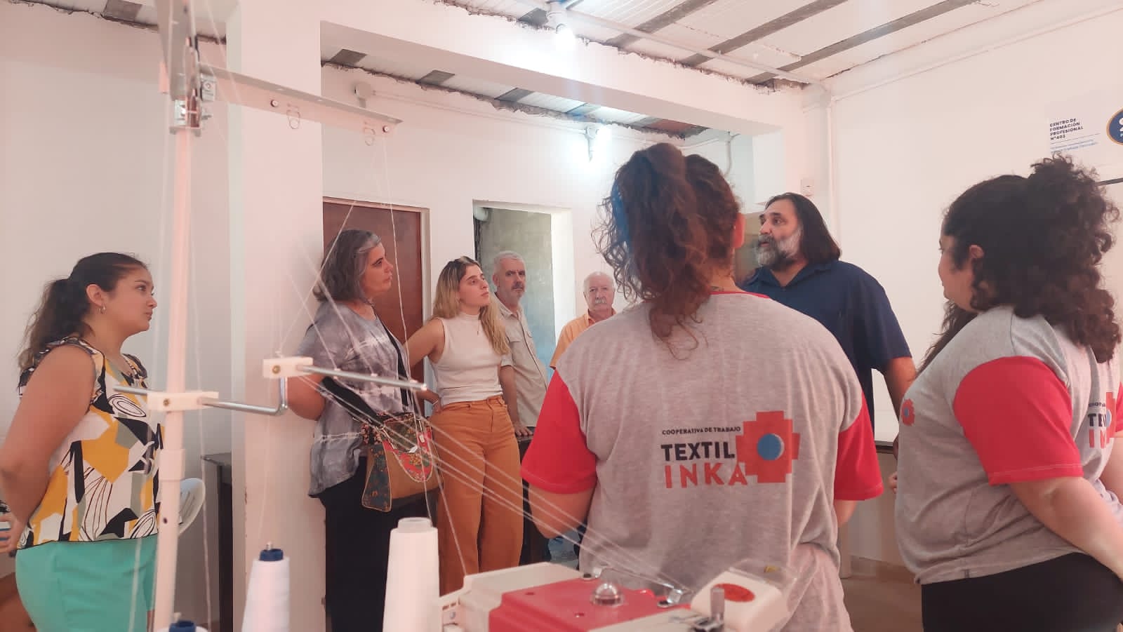 En su visita a ÍNTEGRA, Baradel recorrió las instalaciones de la cooperativa, que fabrica remeras y realiza arreglos de ropa, y conversó con lxs Trabajadorxs.