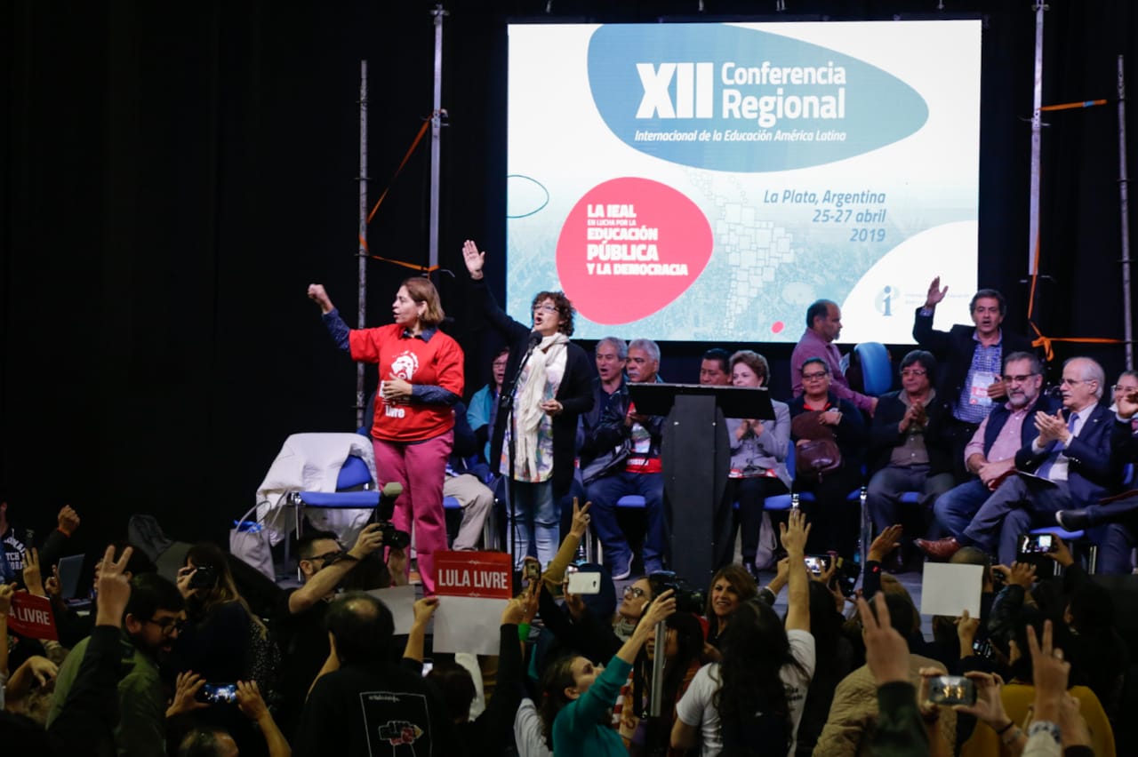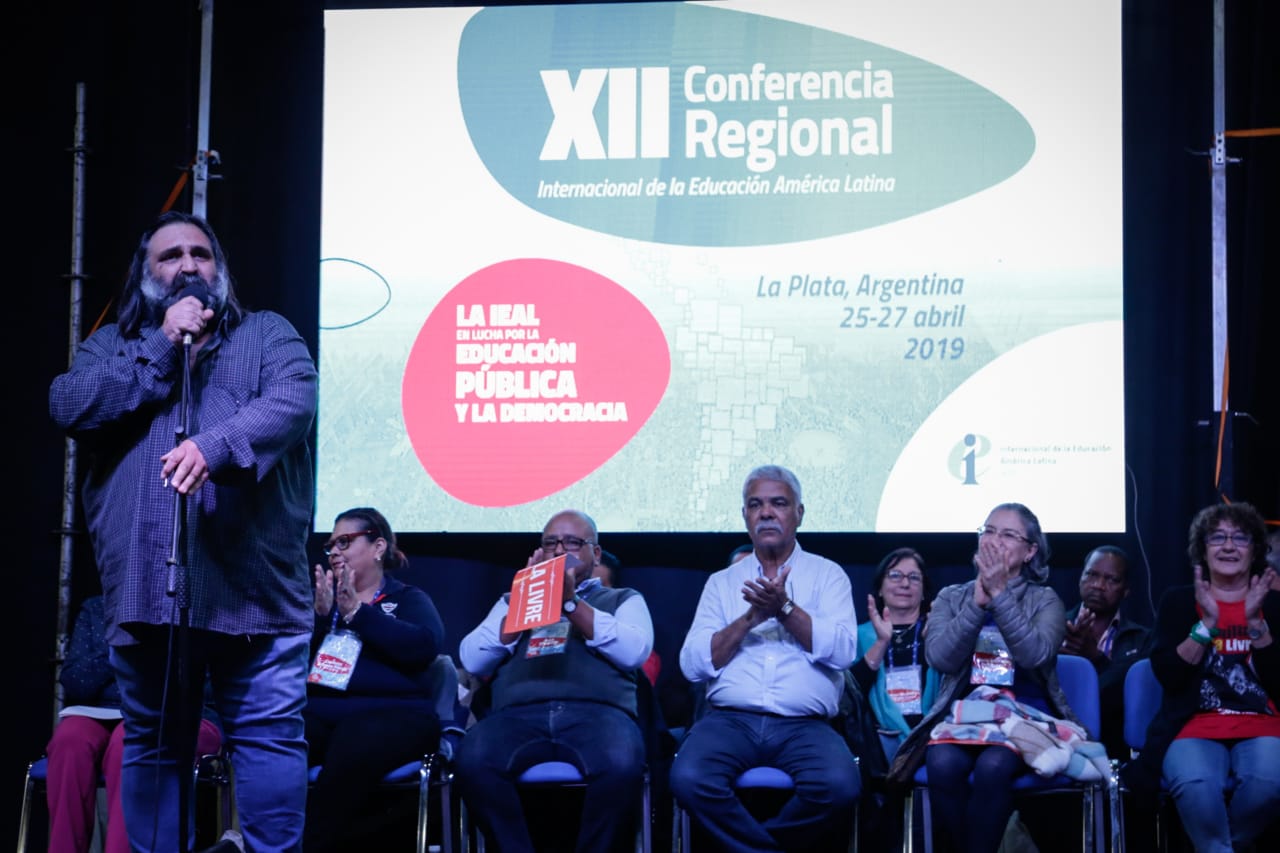 Con mucha fuerza y abrazado por lxs presentes, Roberto Baradel, Secretario General del SUTEBA, manifestó: "Las delegaciones de América Latina, Europa y el resto del mundo encontraron en Argentina un colectivo de Trabajadorxs dispuestxs a defender la Educación Pública, que ponen el cuerpo todos los días, que recorren las Escuelas y aguantan las mentiras y los ataques. Venimos de más de un año de conflicto, donde quisieron borrar del mapa al SUTEBA y a la CTERA. No nos vencieron, ganamos una Paritaria y no dejamos a ningún/a compañerx solx, les pusimos condicionamientos para que terminaran con los sumarios, porque no olvidamos a Sandra y Rubén y porque queremos que lxs pibxs puedan estudiar mejor. Ese es el orgullo de ser del SUTEBA, de la CTERA y de dar la pelea con todxs ustedes".