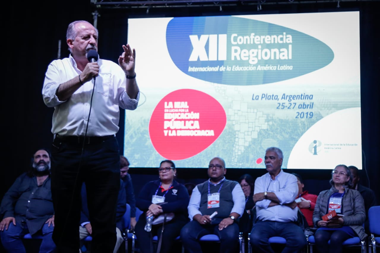 Las actividades de la segunda jornada de la Conferencia Regional cerraron con las palabras del Maestro Hugo Yasky, quien el jueves 25 volvió a ser reelecto en mandato como Presidente de la IEAL.