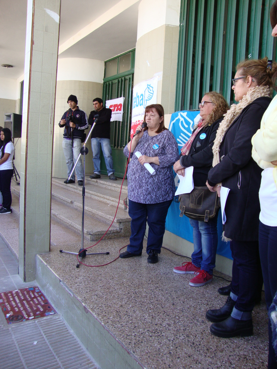 El encuentro se inició con las palabras de la Secretaria de DD.HH. del SUTEBA Baradero, Gabriela Dolcemelo y de la Secretaria Adjunta, Carmen Varela, para luego dar lugar a la directora del establecimiento, representantes de Barrios x Memoria y Justicia y el intendente municipal, Aldo Carossi.