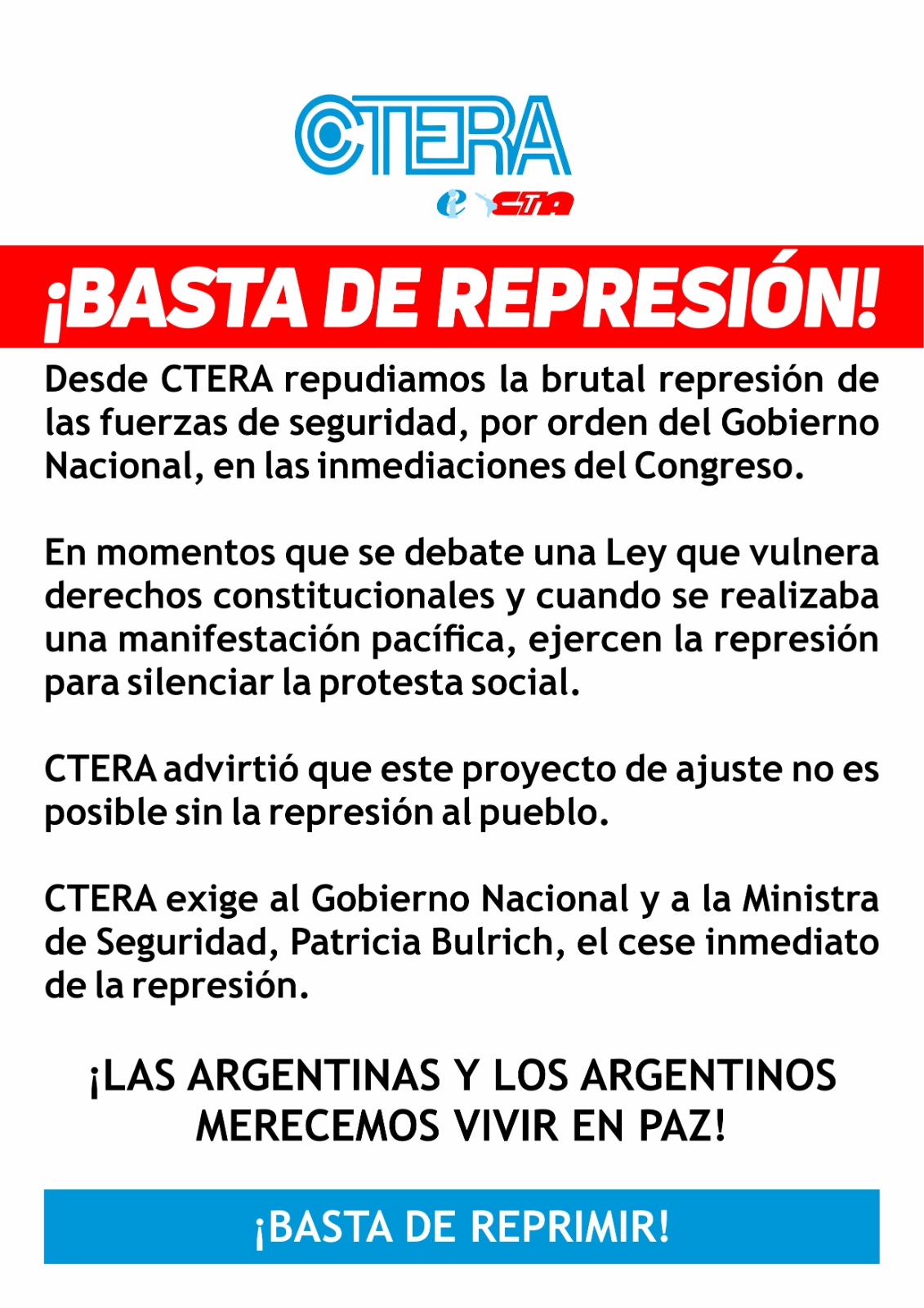 ¡BASTA DE REPRESIÓN!