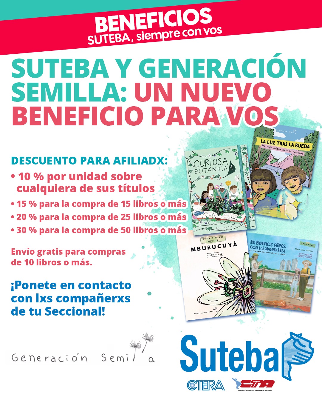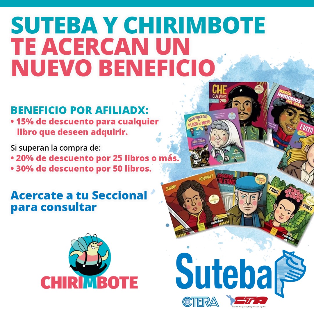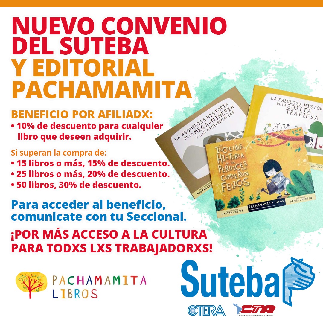 El SUTEBA tiene convenios vigentes con las editoriales: Generación Semilla, Pachamamita y Chirimbote.