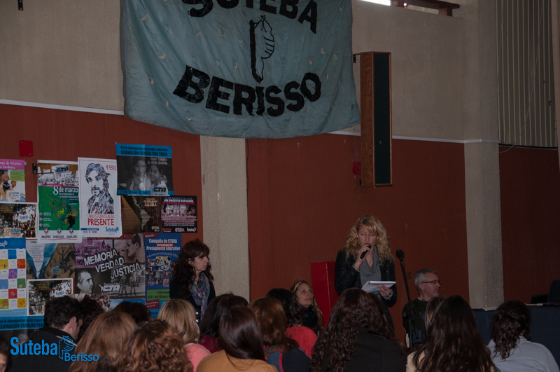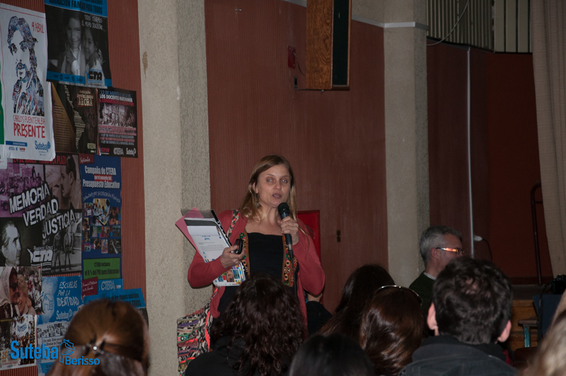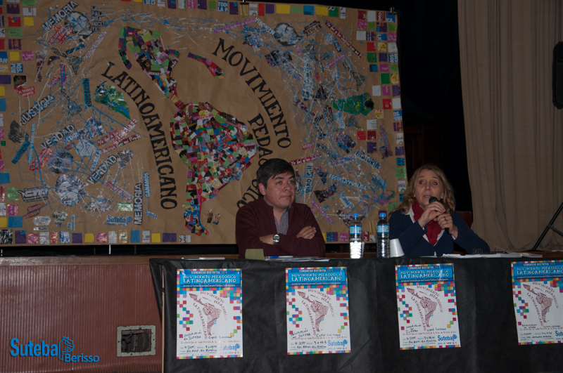 Gladys Bravo, Subsecretaria de Comunicaciones del SUTEBA Provincia, realizó luego una disertación, dando la bienvenida y definiendo los lineamientos político-pedagógicos a abordar durante el día de trabajo, centrados en el panorama político actual de América Latina y cómo se enmarca en el mismo el MPL, como también en el rol de estos encuentros en la formación y consolidación de las experiencias pedagógicas innovadoras.